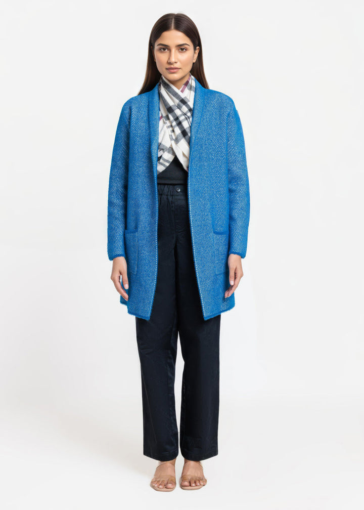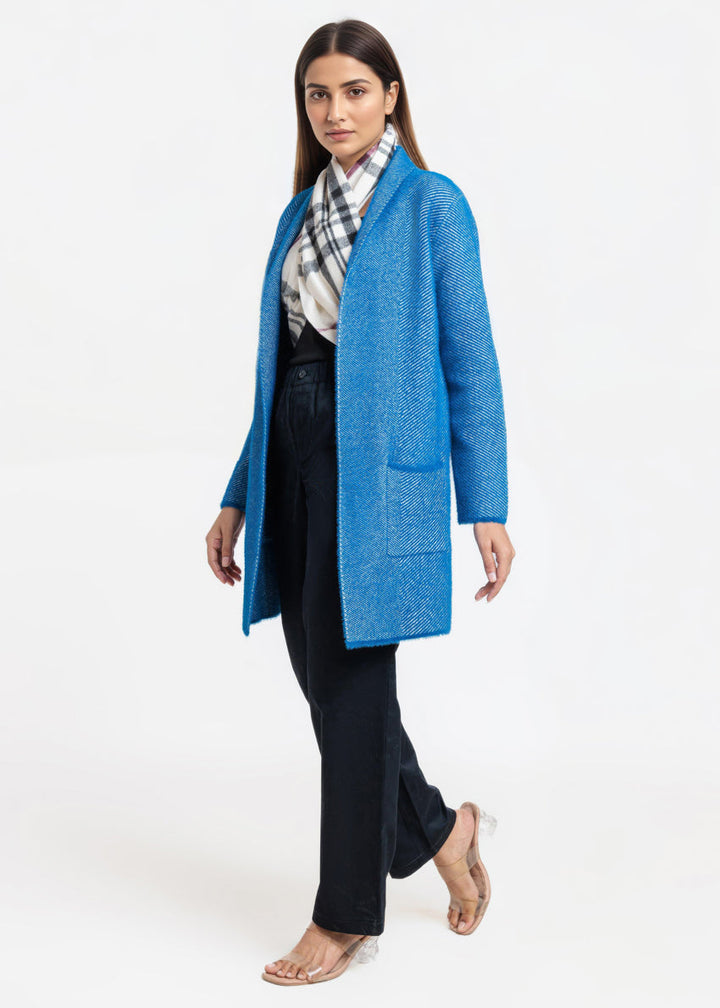 R-Blue-Shawl Collar Full Sleeves Cardigan Sweater (25Y-120-67)