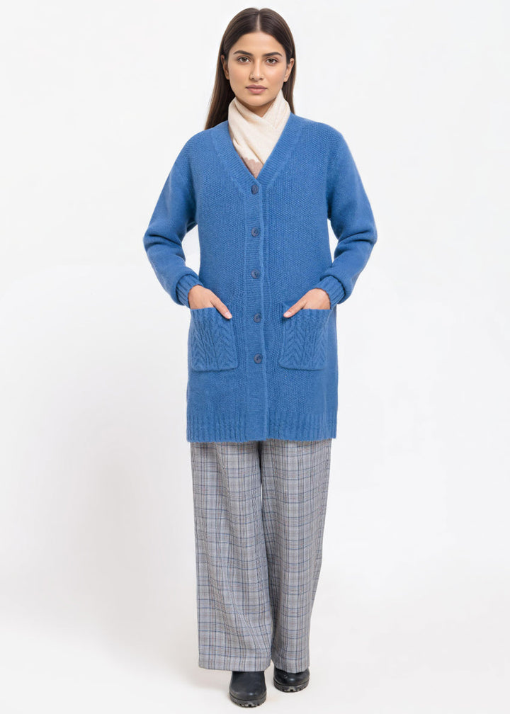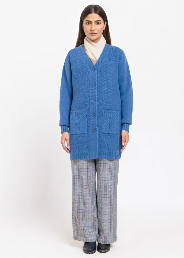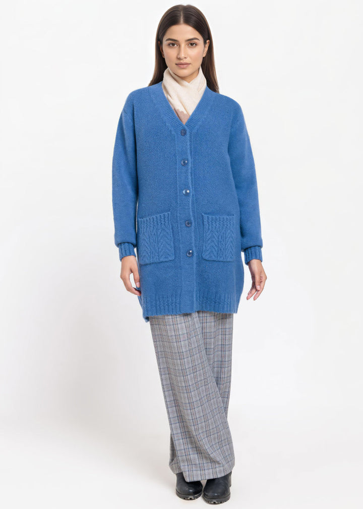 Blue-V-Cardigan Full Sleeves Sweater (25Y-121-67)