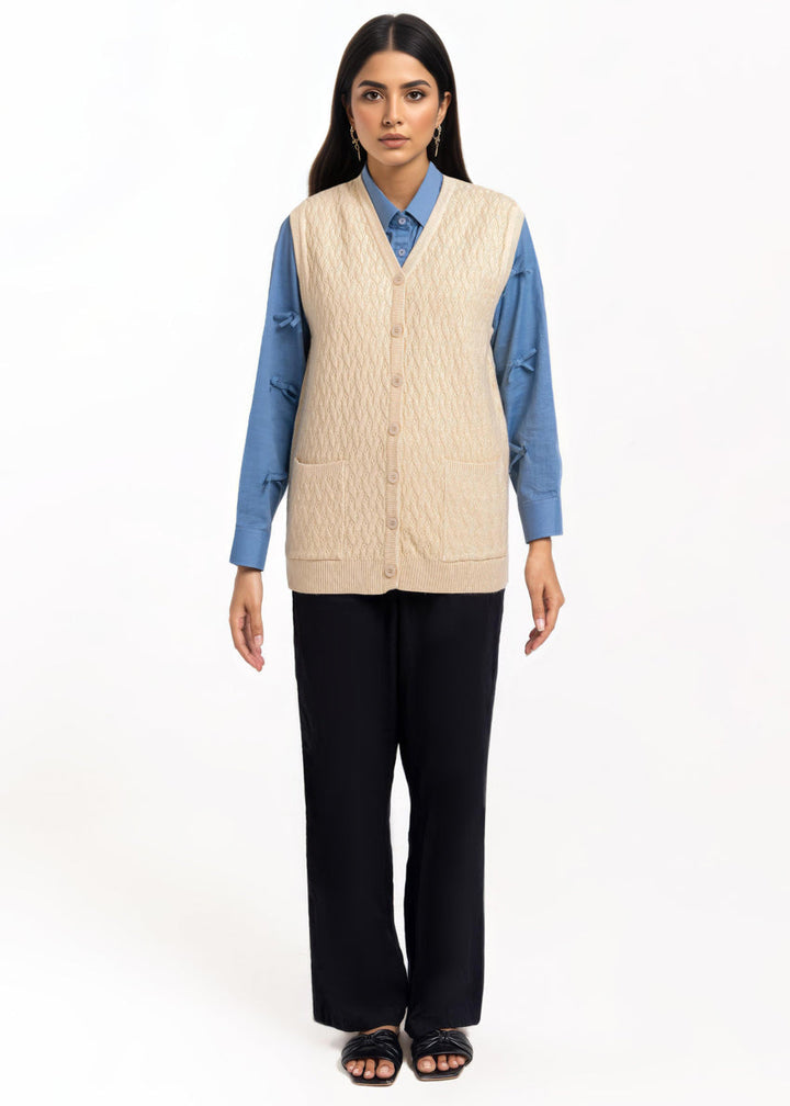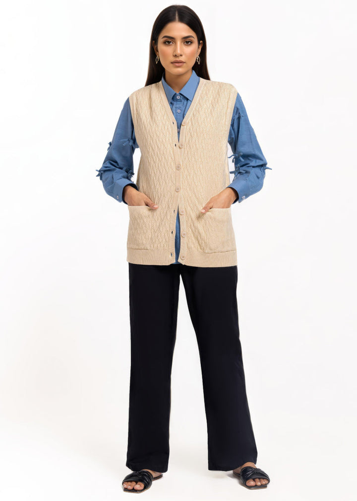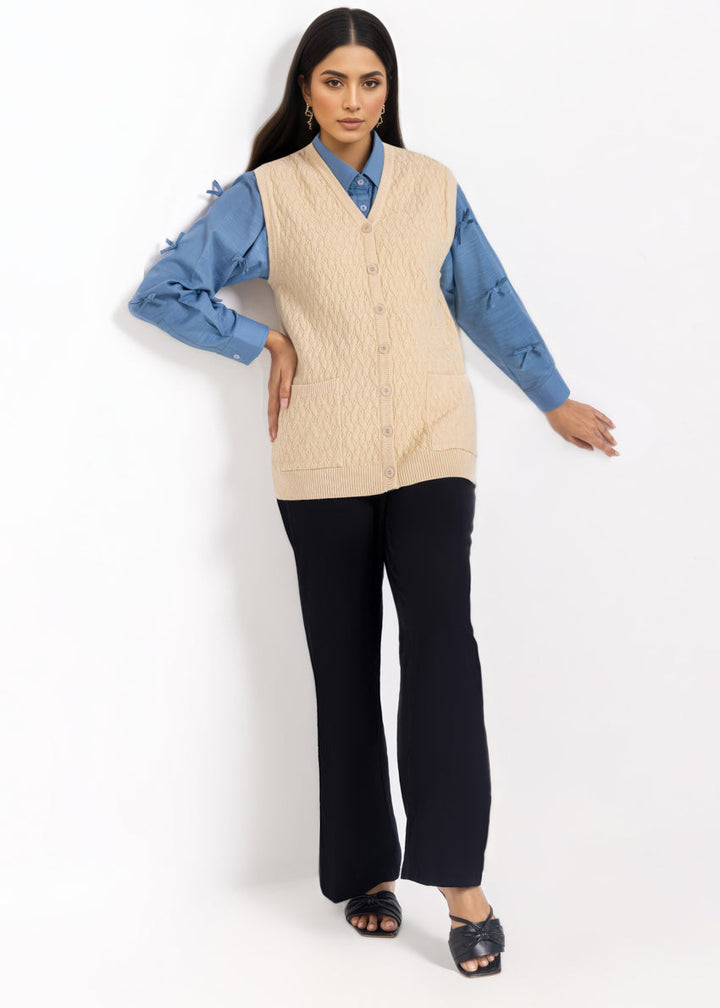 Beige-V-Cardigan Sando Sweater (25Y-202-67)