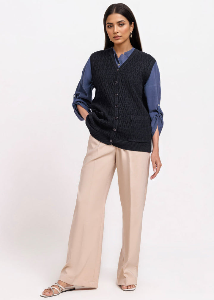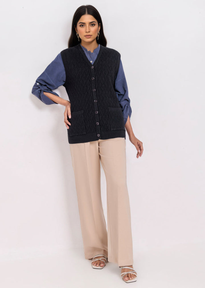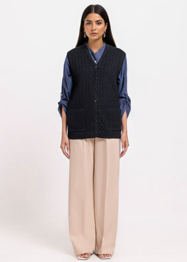 Black-V-Cardigan Sando Sweater (25Y-202-67)