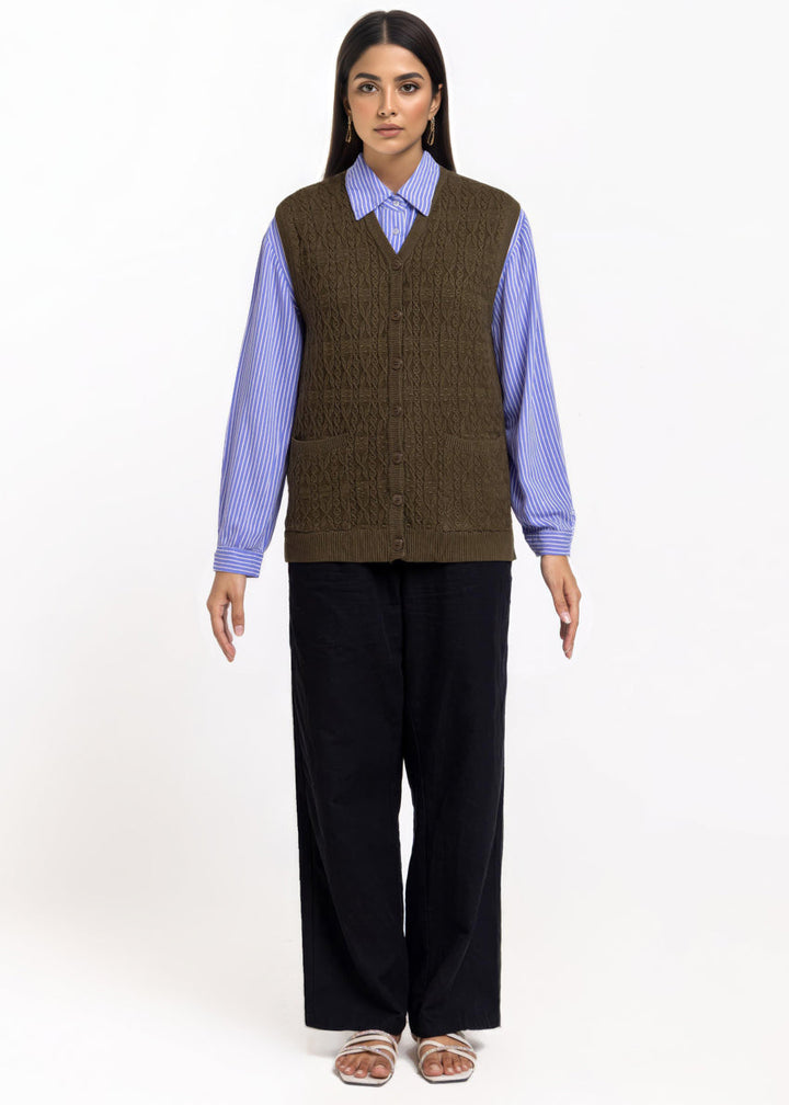 Olive-V-Cardigan Sando Sweater (25Y-204-67)