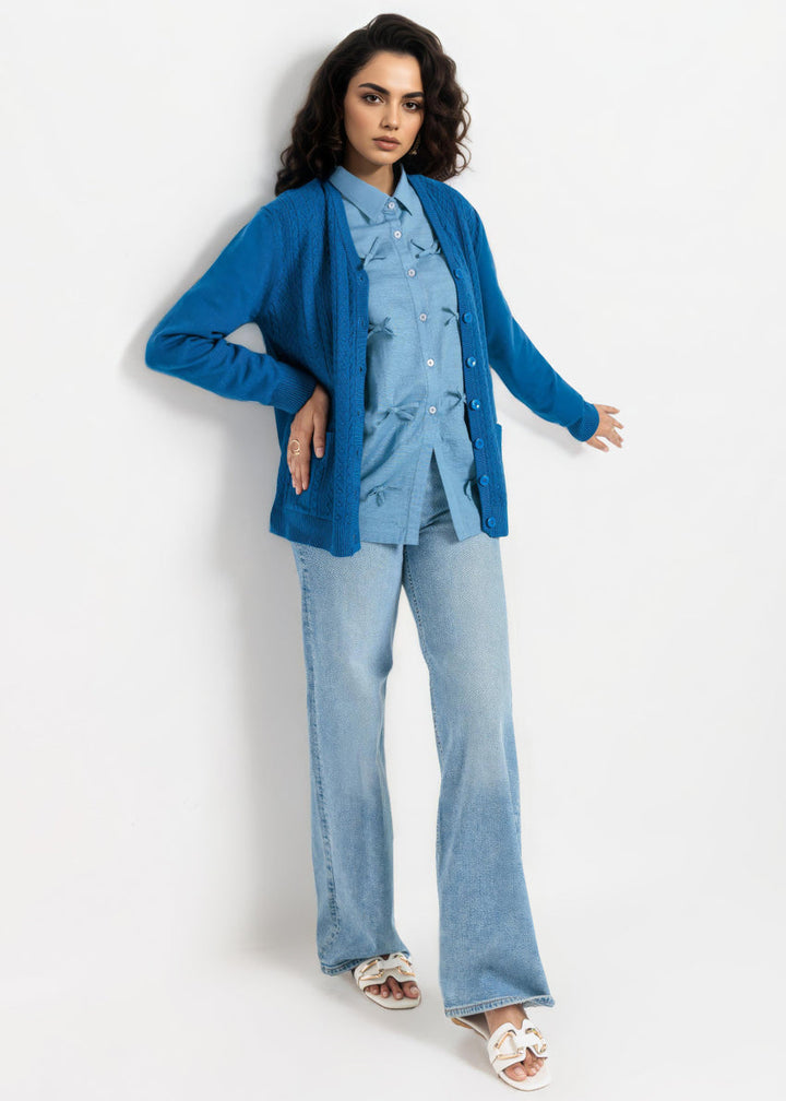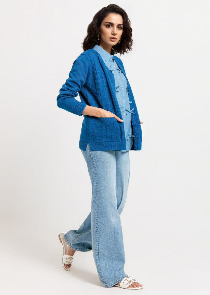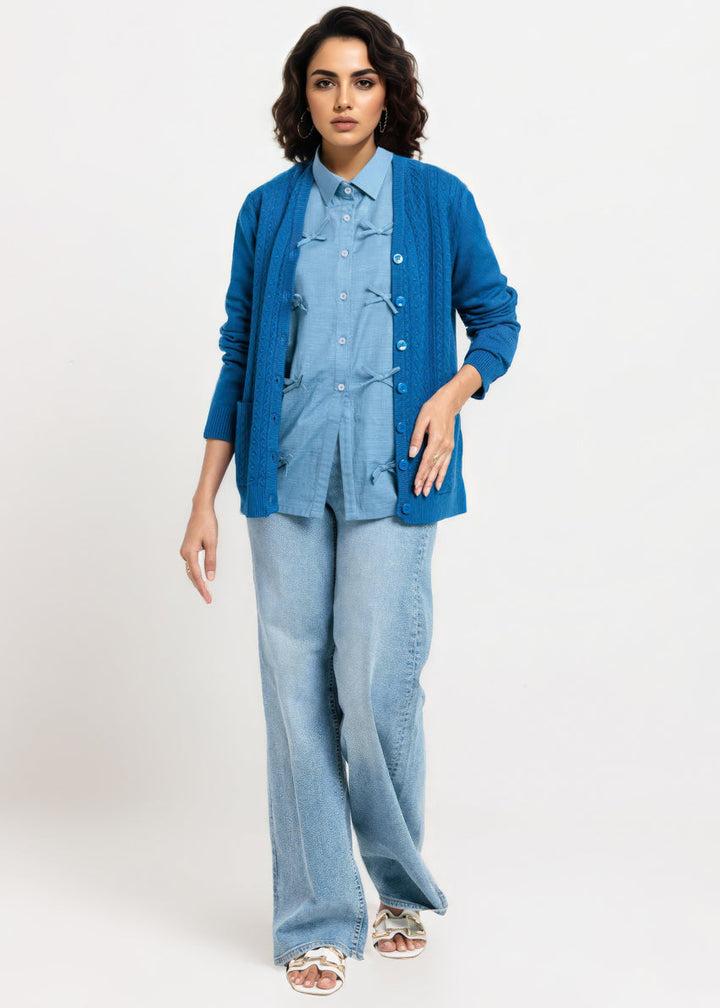 Blue-V-Cardigan Full Sleeves Sweater (25Y-205-67)