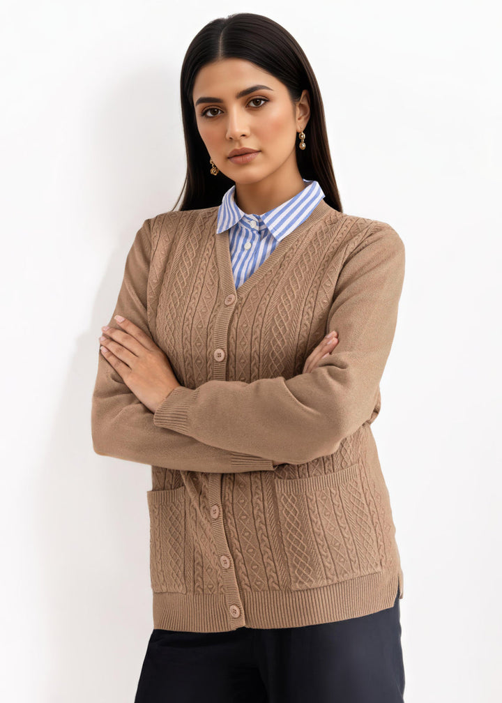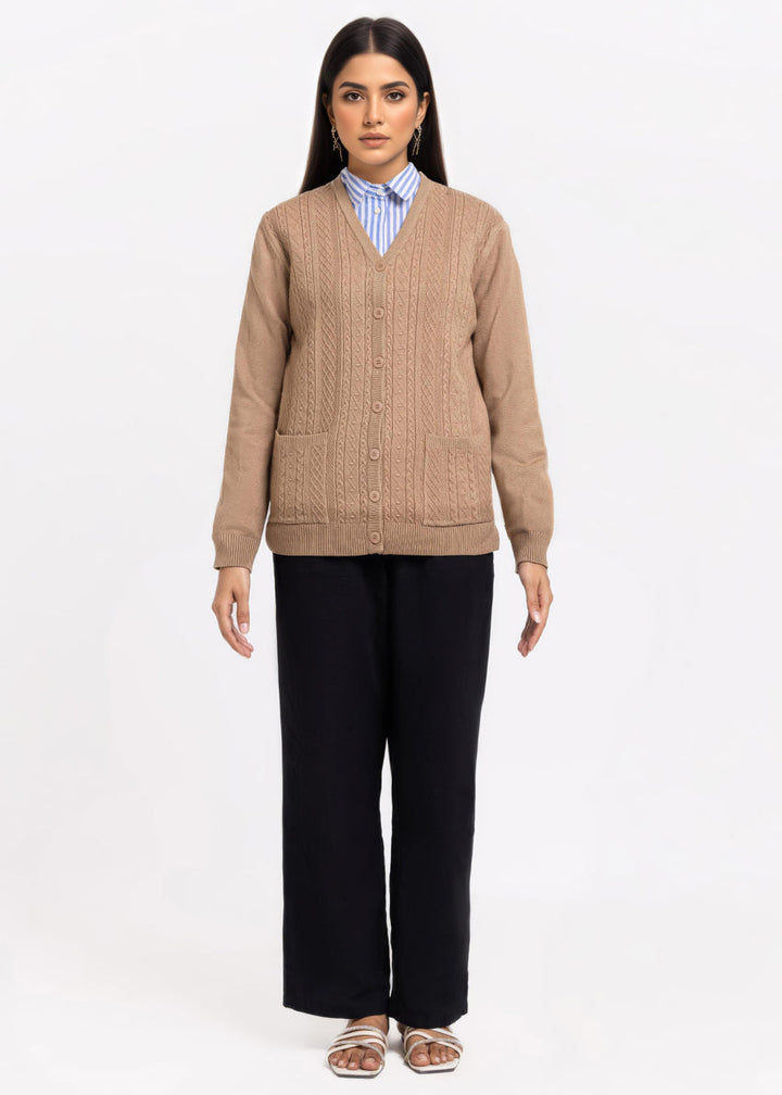 D-Beige-V-Cardigan Full Sleeves Sweater (25Y-205-67)