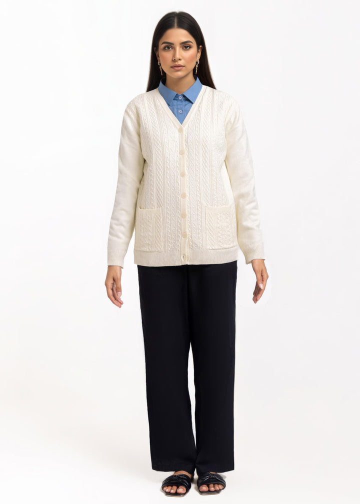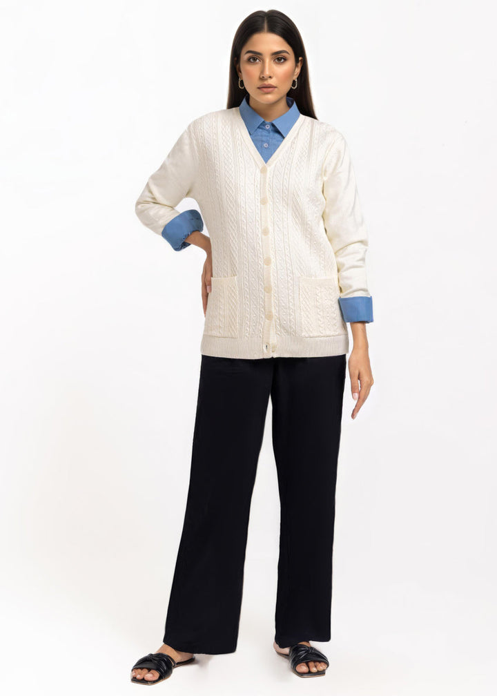 White-V-Cardigan Full Sleeves Sweater (25Y-205-67)