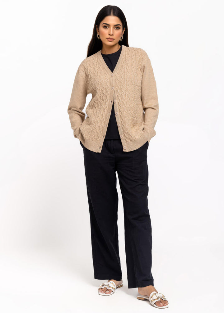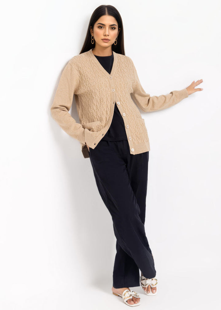 D-Beige-V-Cardigan Full Sleeves Sweater (25Y-209-67)