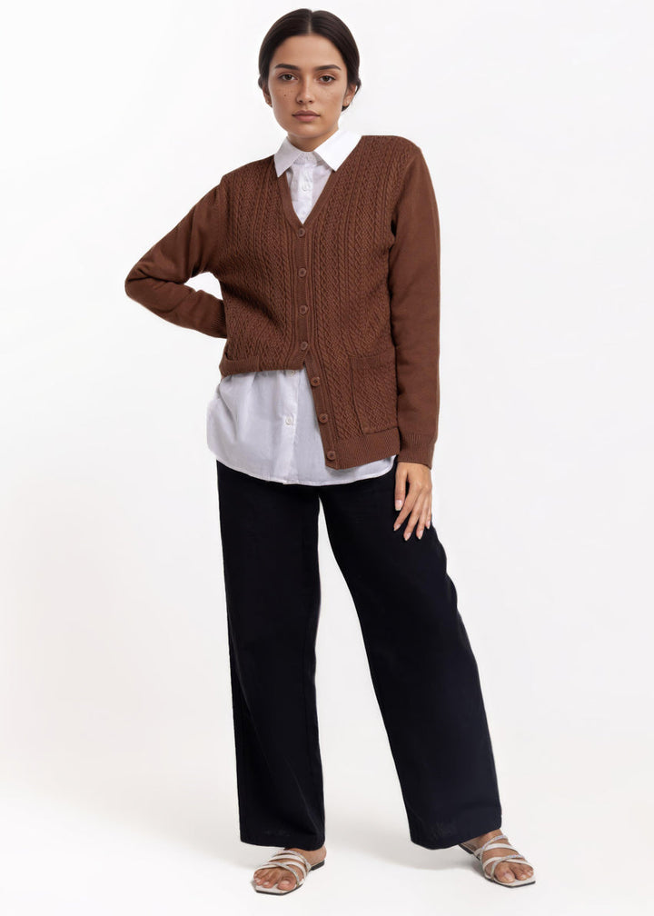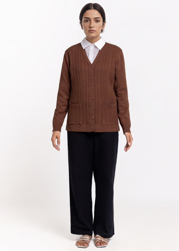Brown-V-Cardigan Full Sleeves Sweater (25Y-211-67)