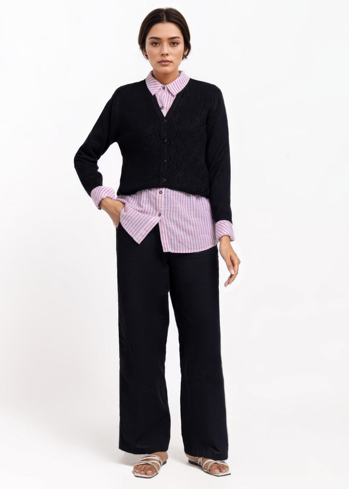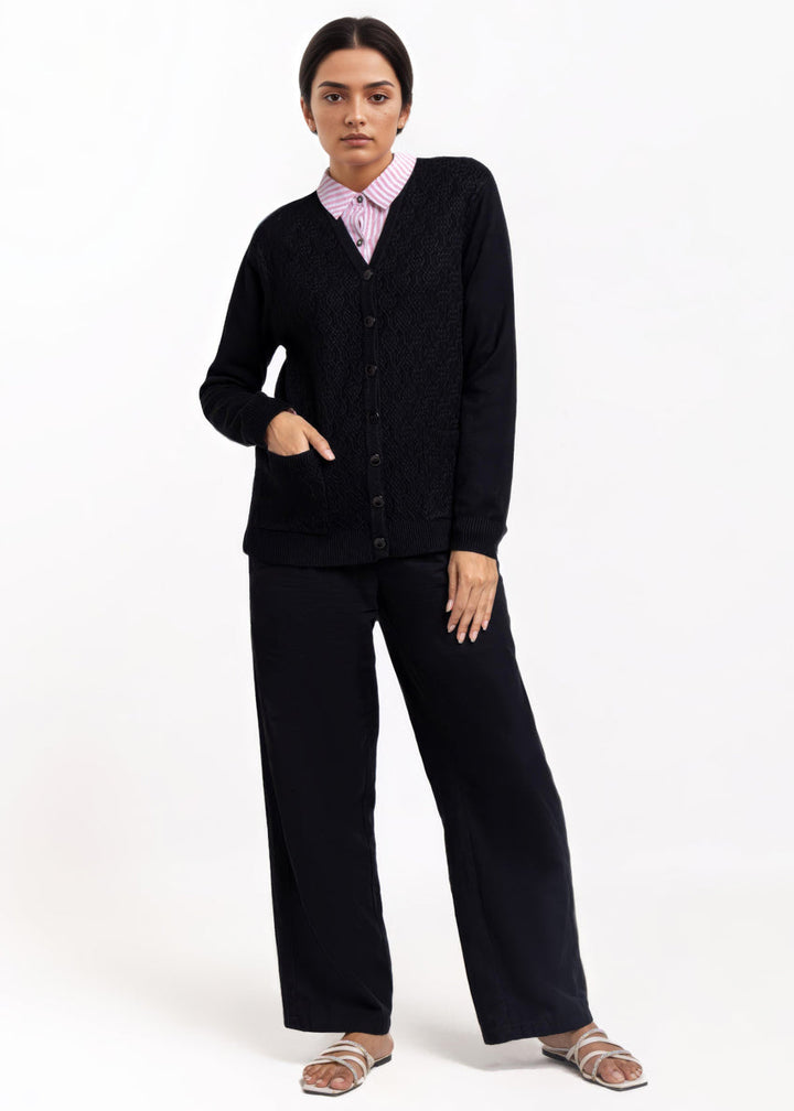 Black-V-Cardigan Full Sleeves Sweater (25Y-213-67)