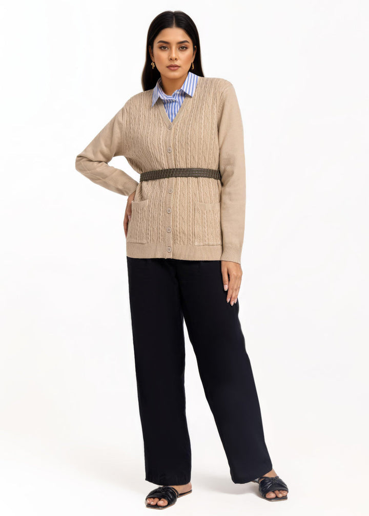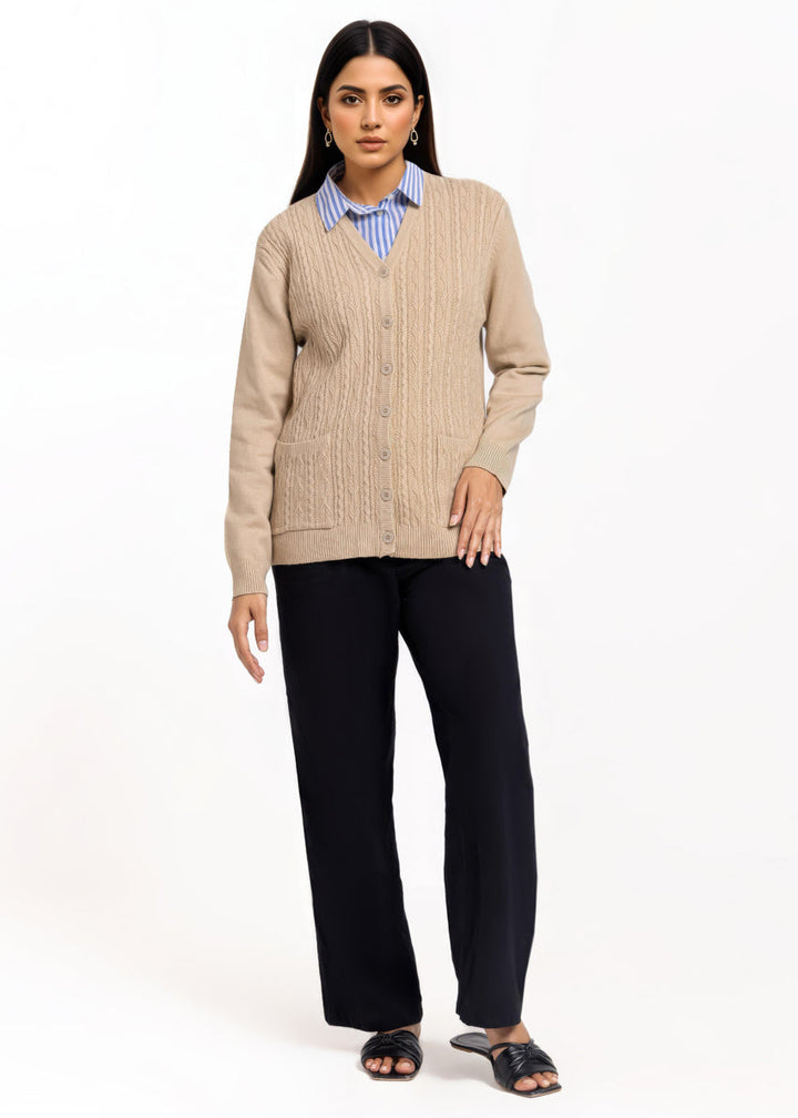 Beige-V-Cardigan Full Sleeves Sweater (25Y-215-67)
