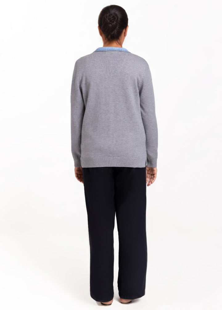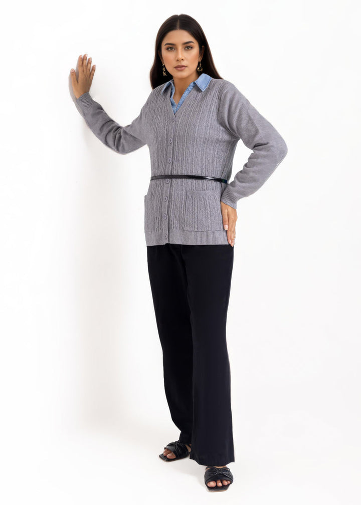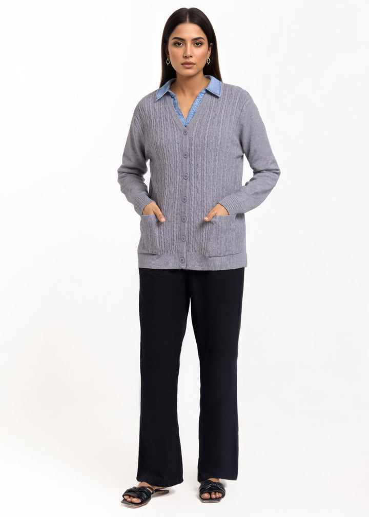 Grey-V-Cardigan Full Sleeves Sweater (25Y-215-67)