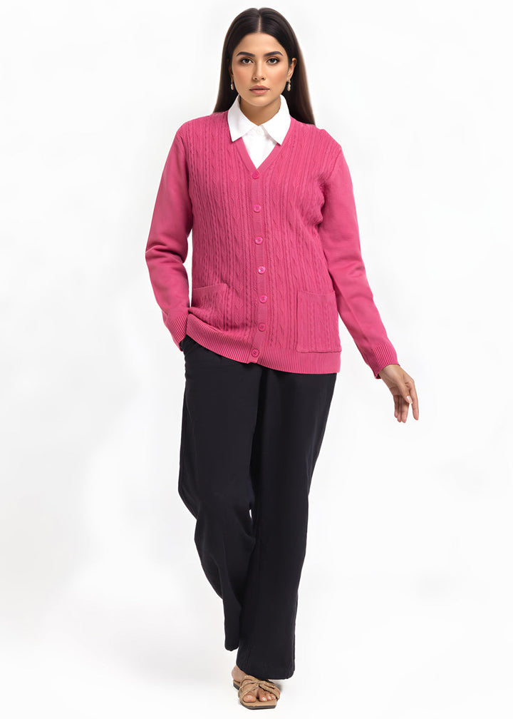 Pink-V-Cardigan Full Sleeves Sweater (25Y-215-67)
