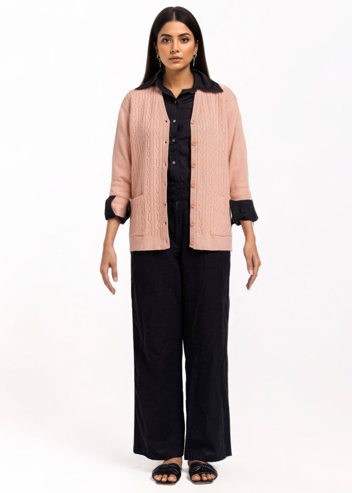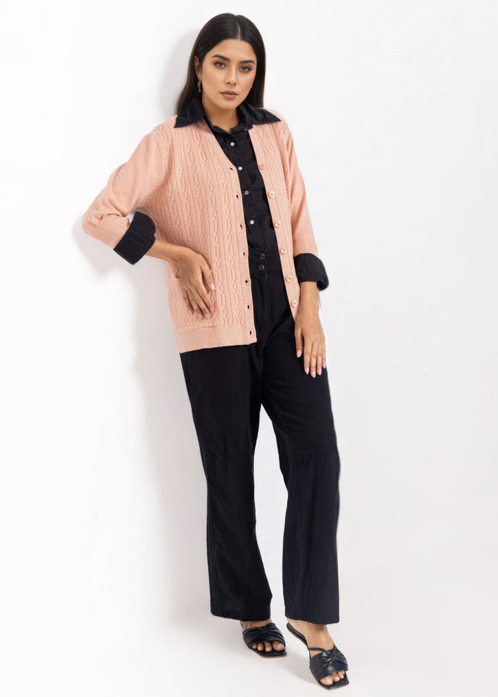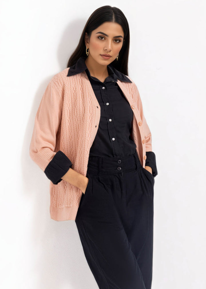 B-Pink-V-Cardigan Full Sleeves Sweater (25Y-217-67)
