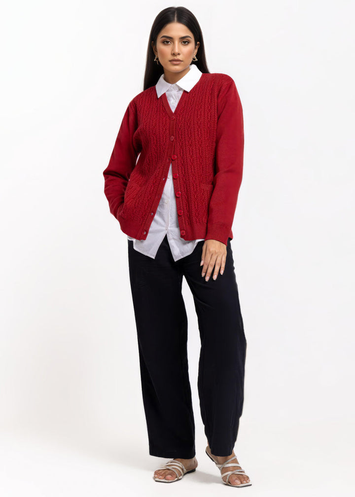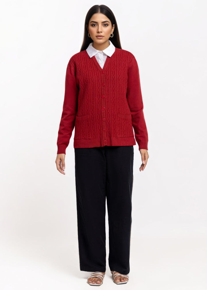 Maroon-V-Cardigan Full Sleeves Sweater (25Y-217-67)