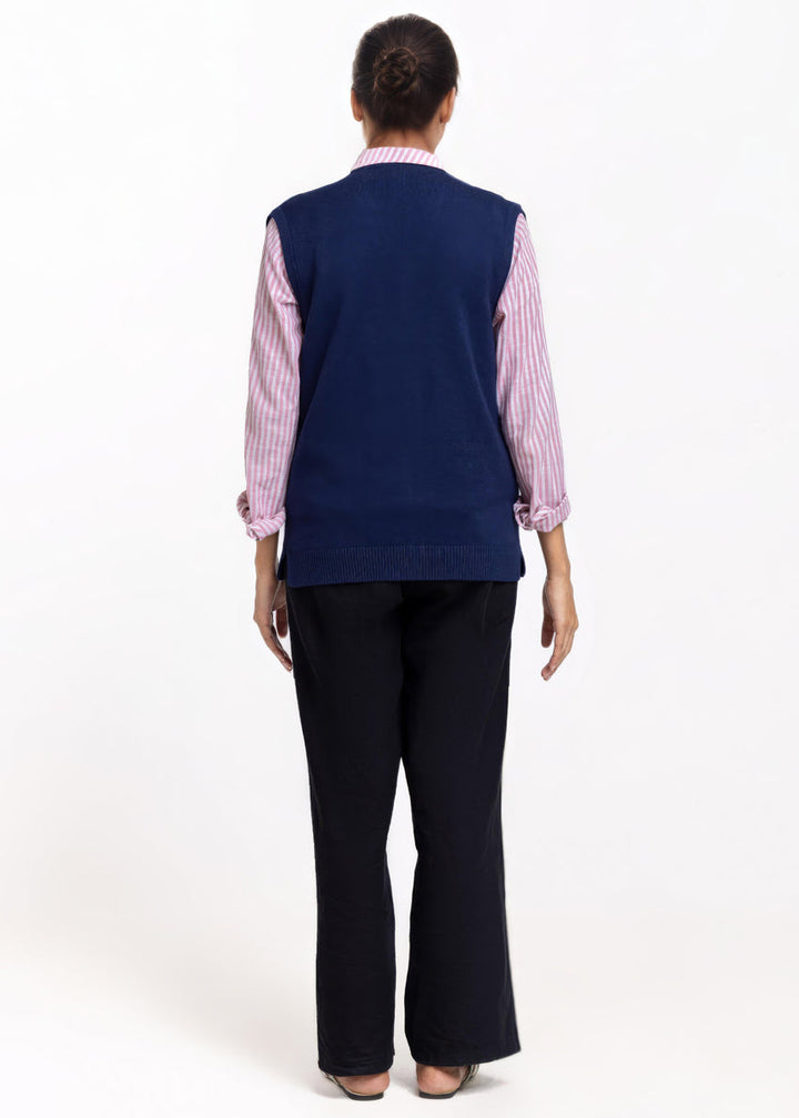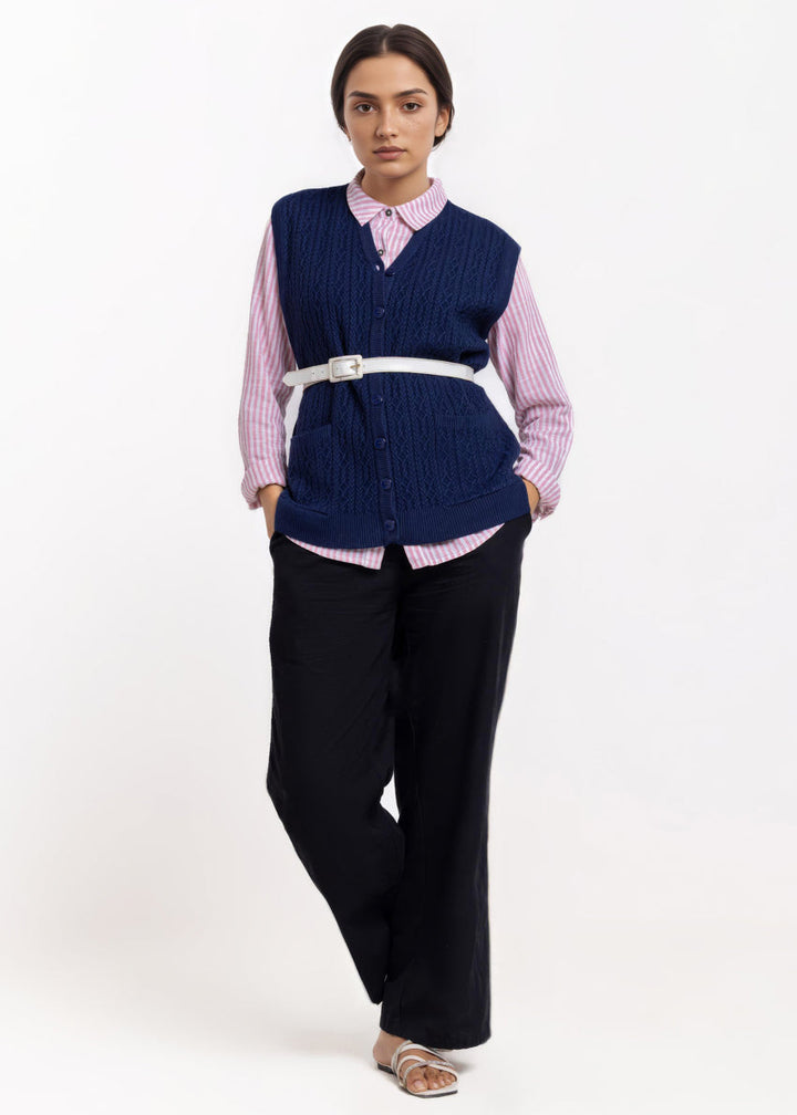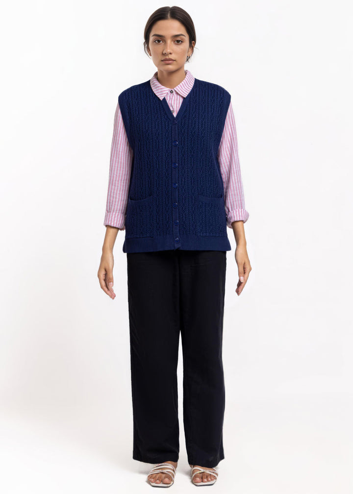 Navy-V-Cardigan Sando Sweater (25Y-218-67)