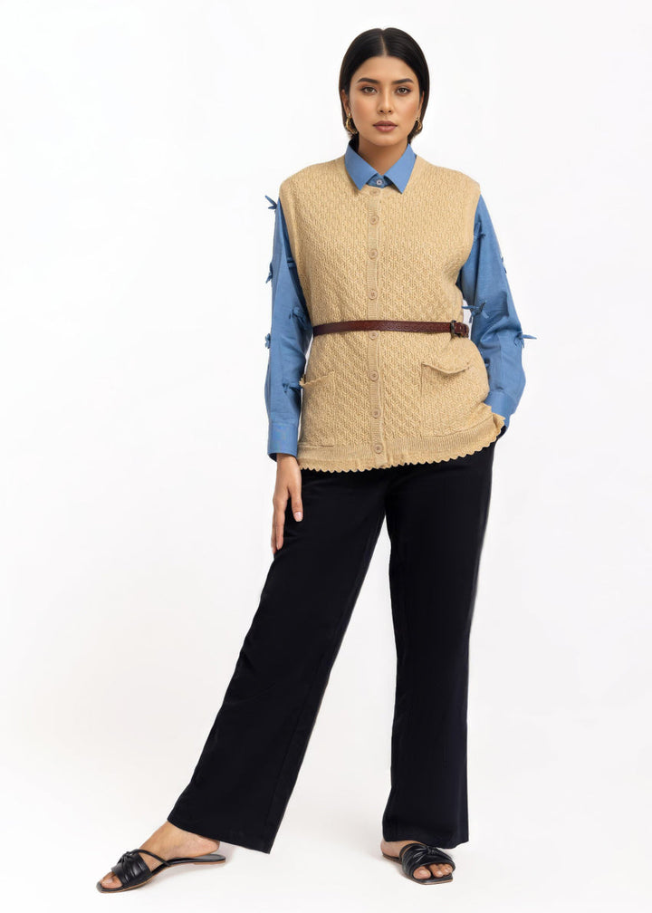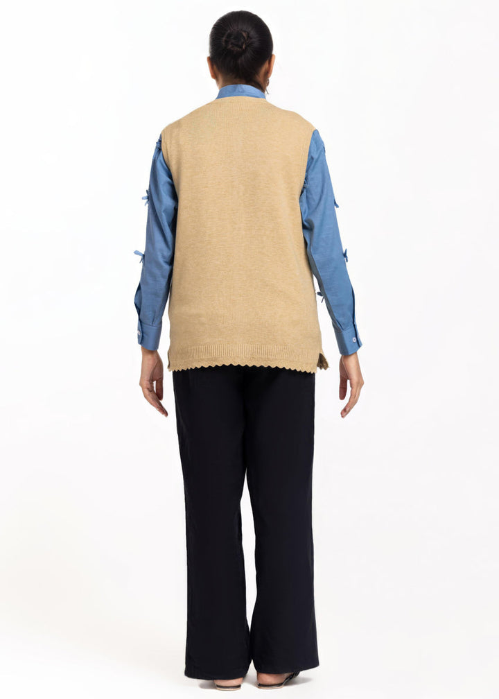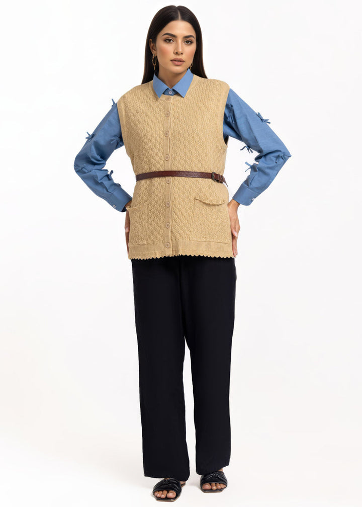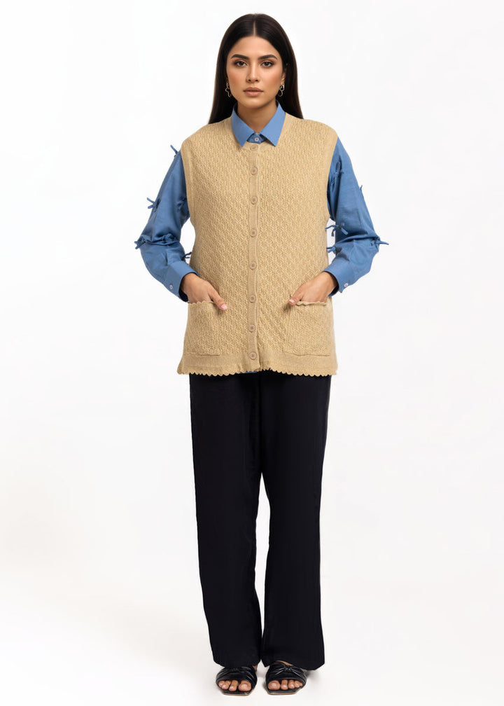 Beige-R-Neck Cardigan Sando Sweater (25Y-222-67)
