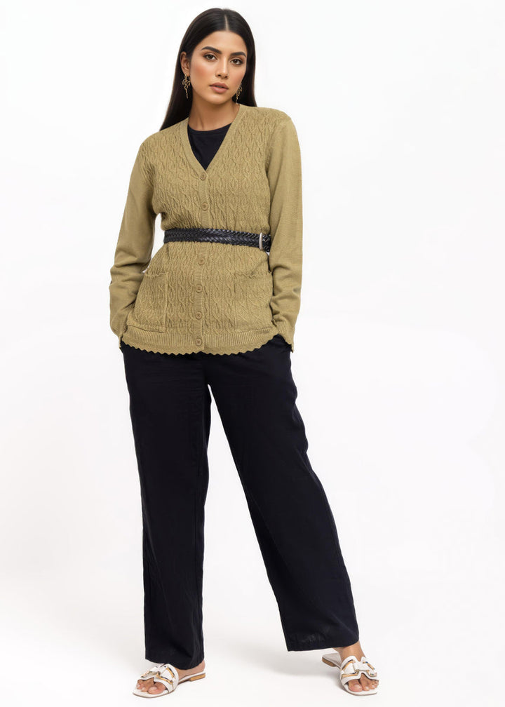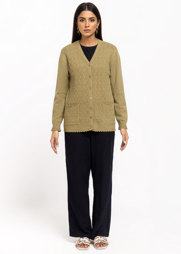 Olive-V-Cardigan Full Sleeves Sweater (25Y-223-67)