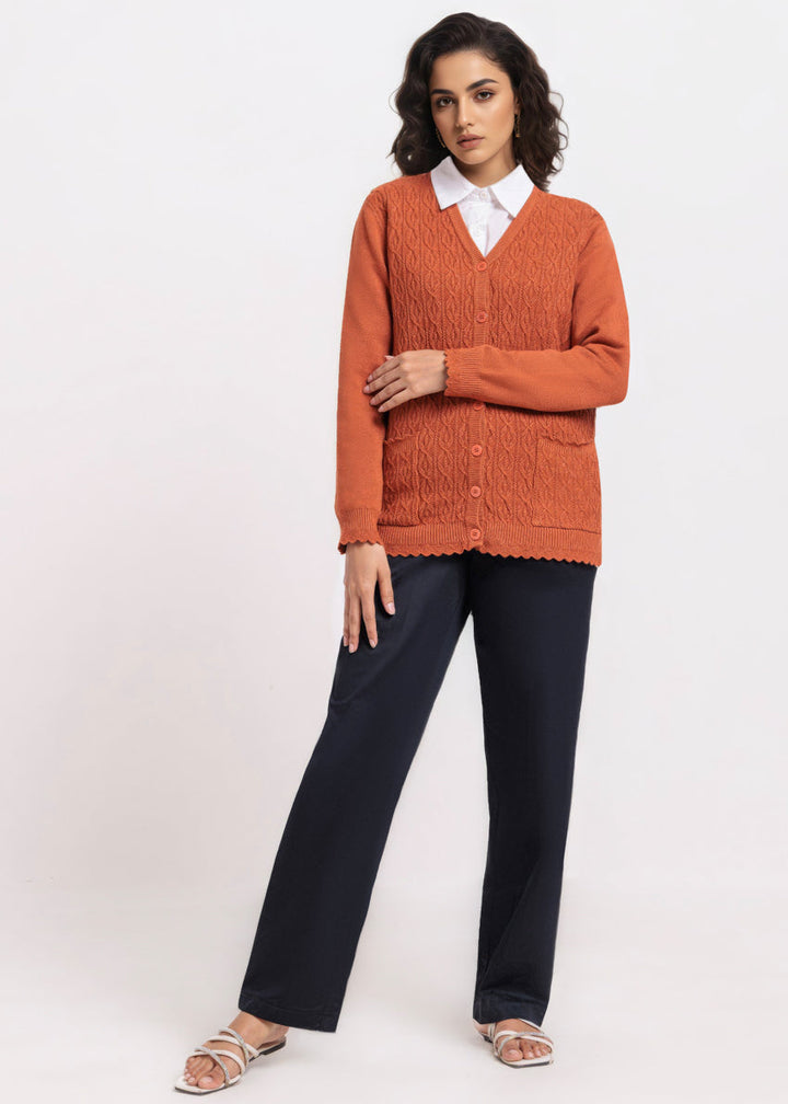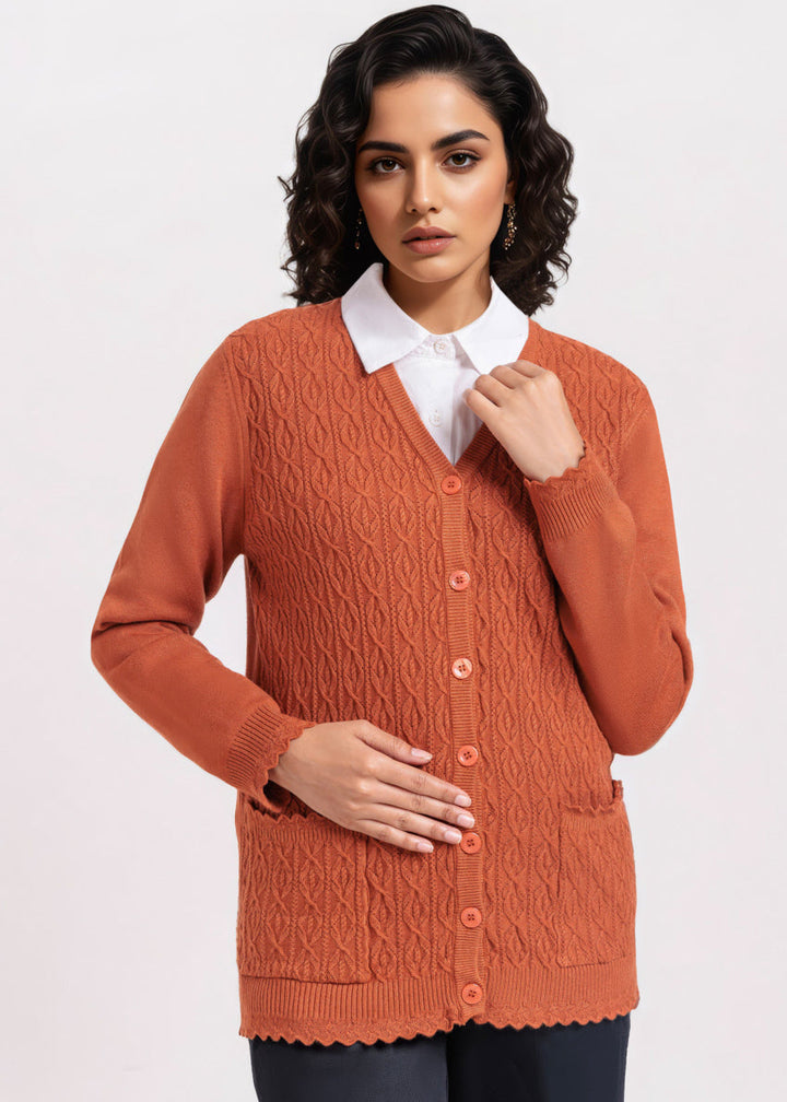 Rust-V-Cardigan Full Sleeves Sweater (25Y-223-67)