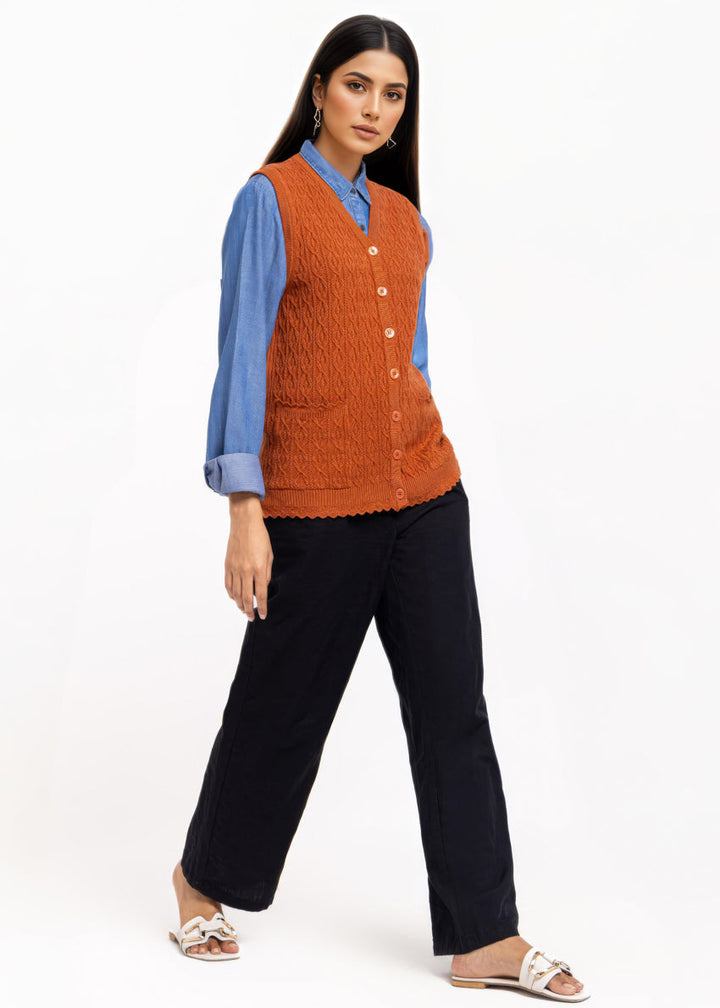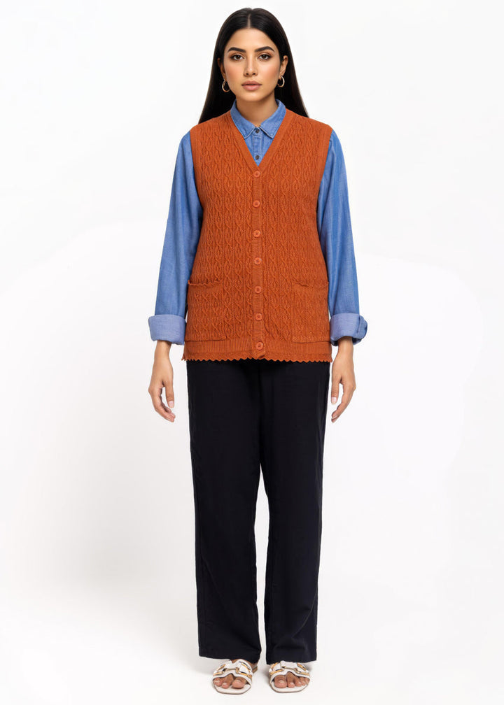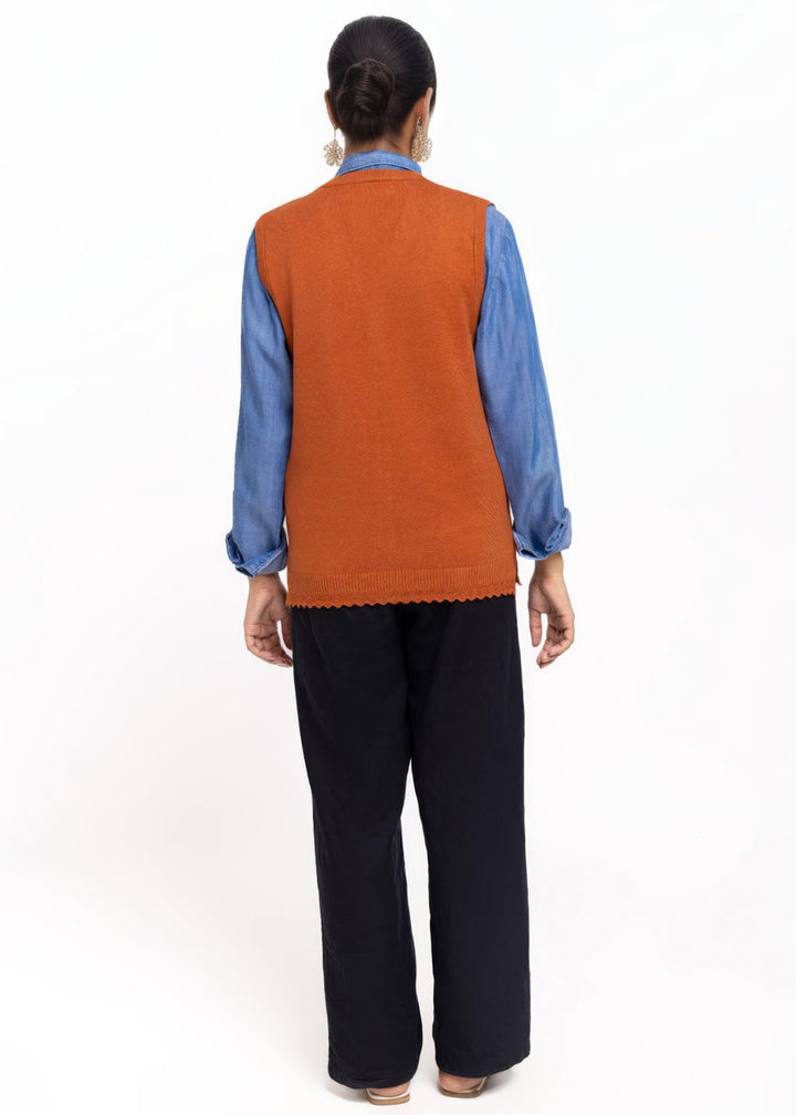 Rust-V-Cardigan Sando Sweater (25Y-224-67)