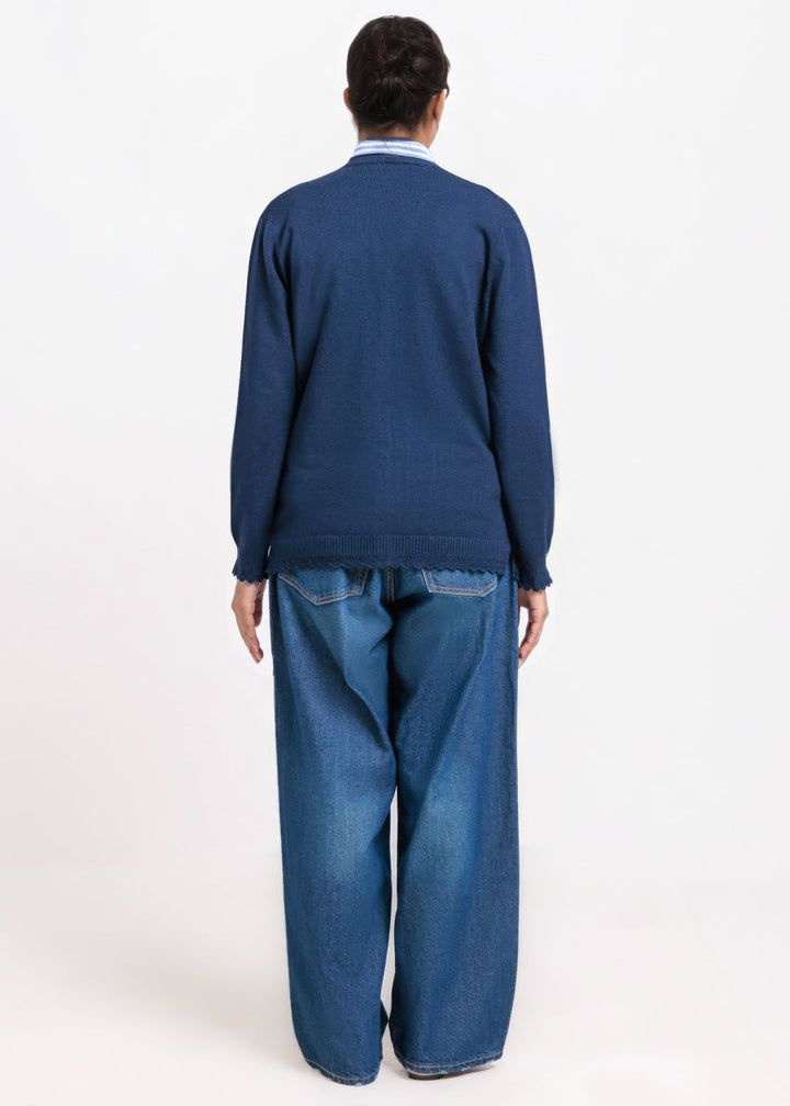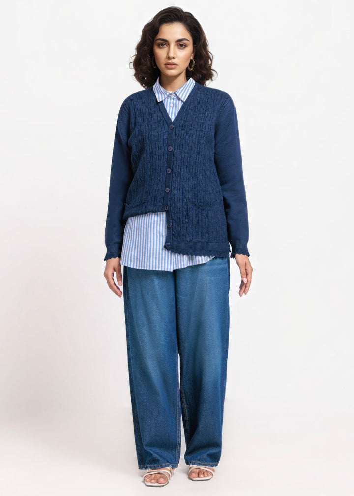 Navy-V-Cardigan Full Sleeves Sweater (25Y-225-67)