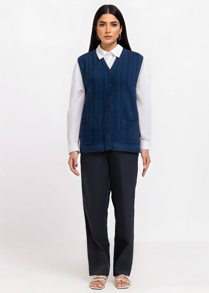 Navy-V-Cardigan Sando Sweater (25Y-226-67)
