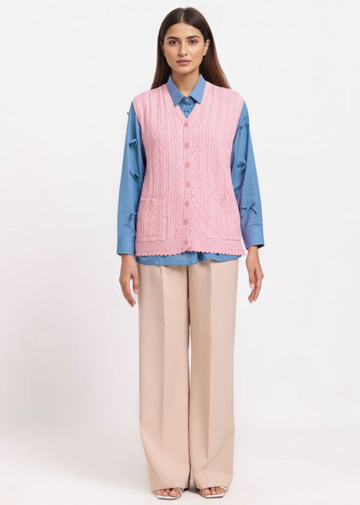 Pink-V-Cardigan Sando Sweater (25Y-226-67)