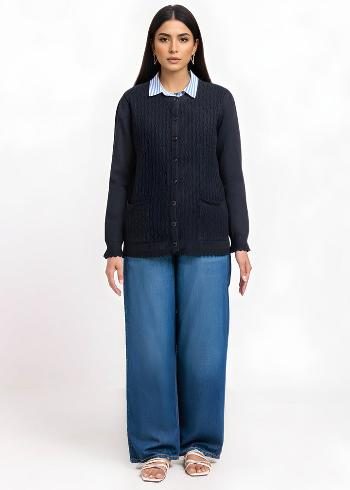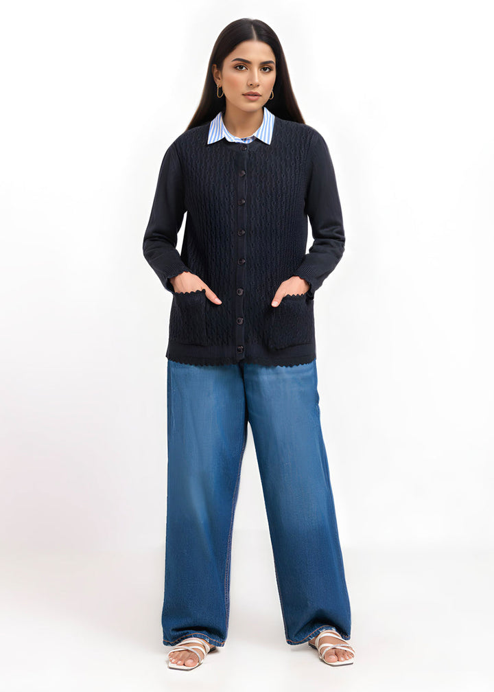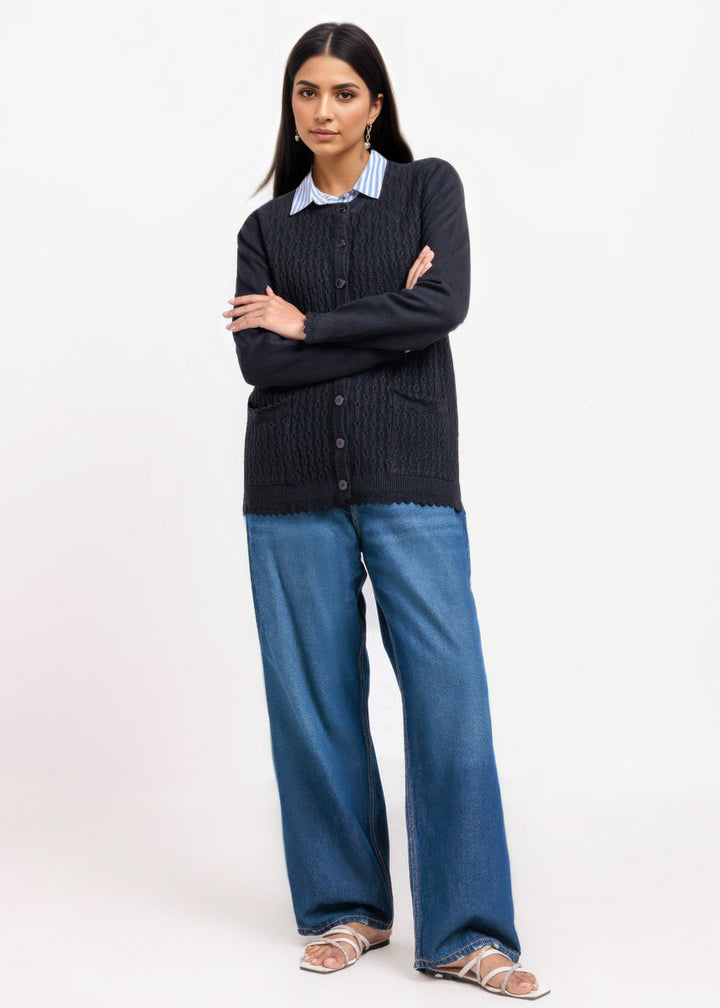 Black-R-Neck Cardigan Full Sleeves Sweater (25Y-227-67)