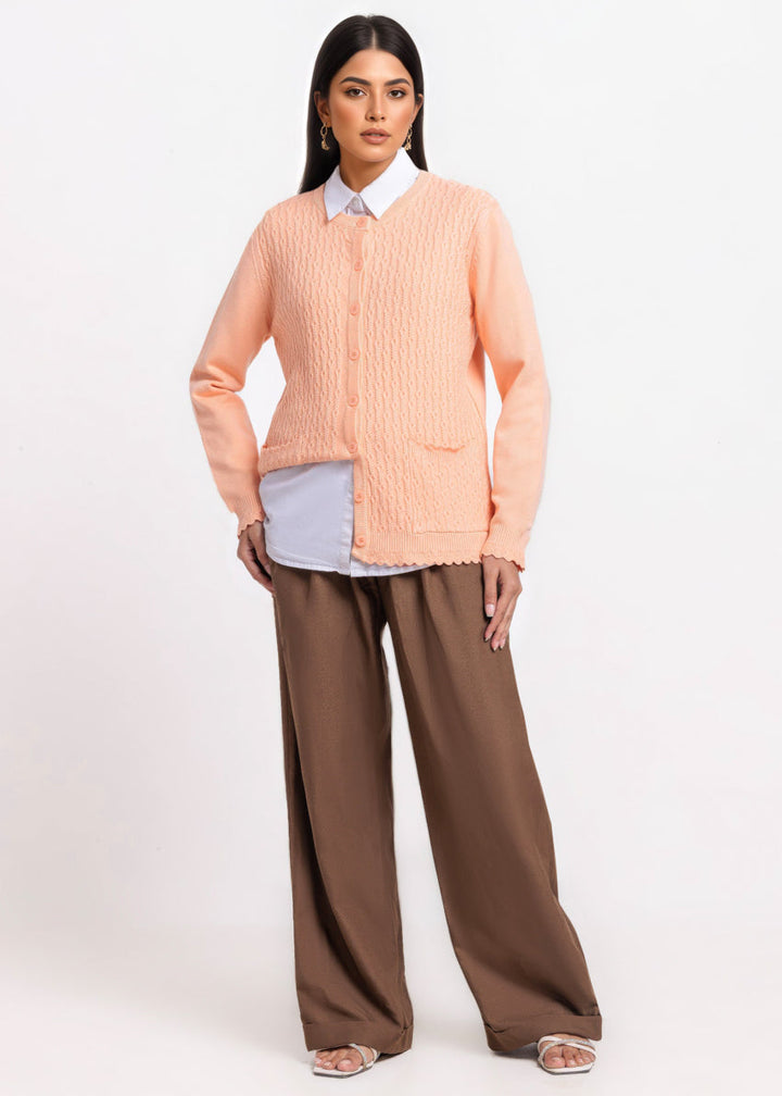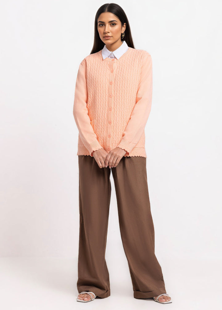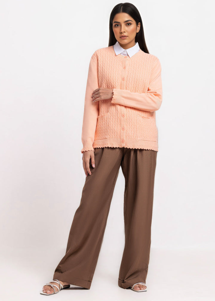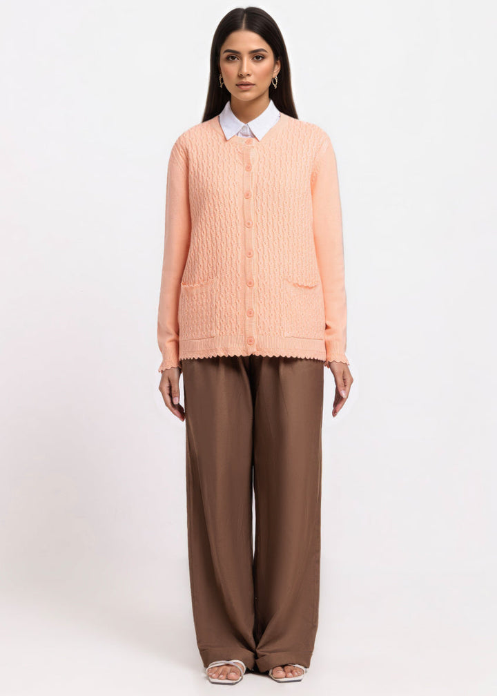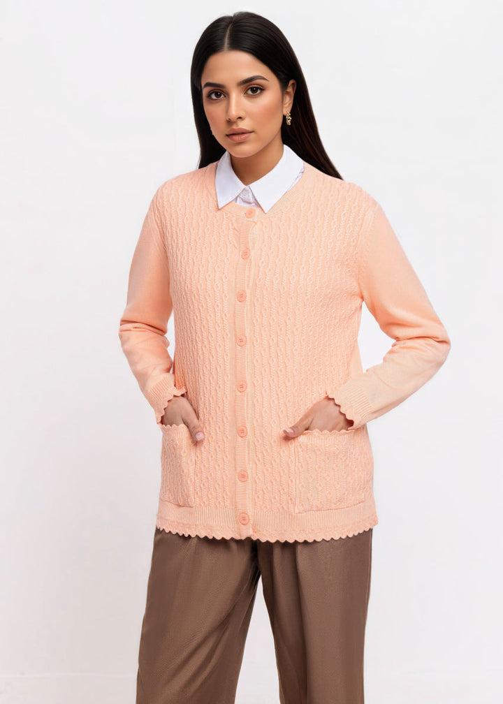 L-Peach-R-Neck Cardigan Full Sleeves Sweater (25Y-227-67)