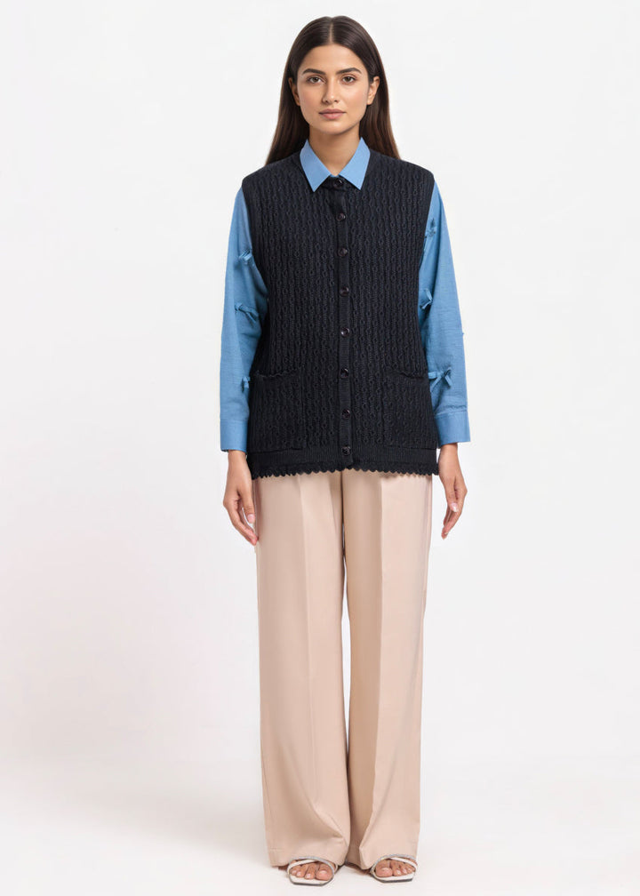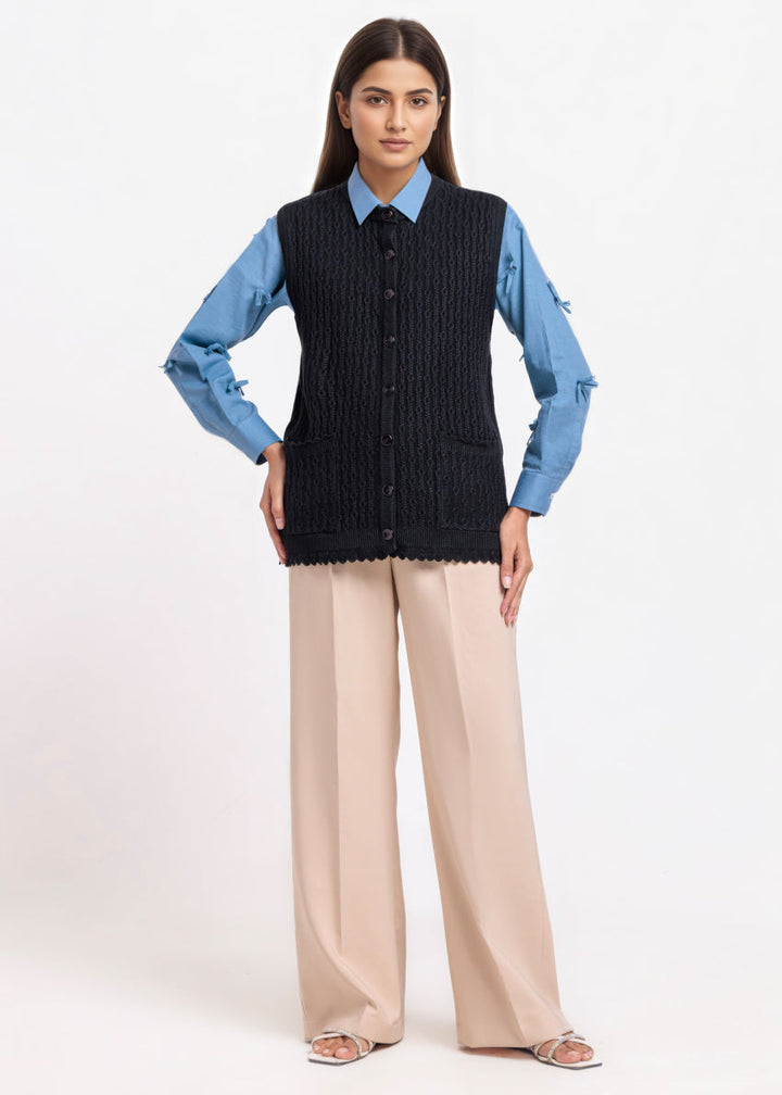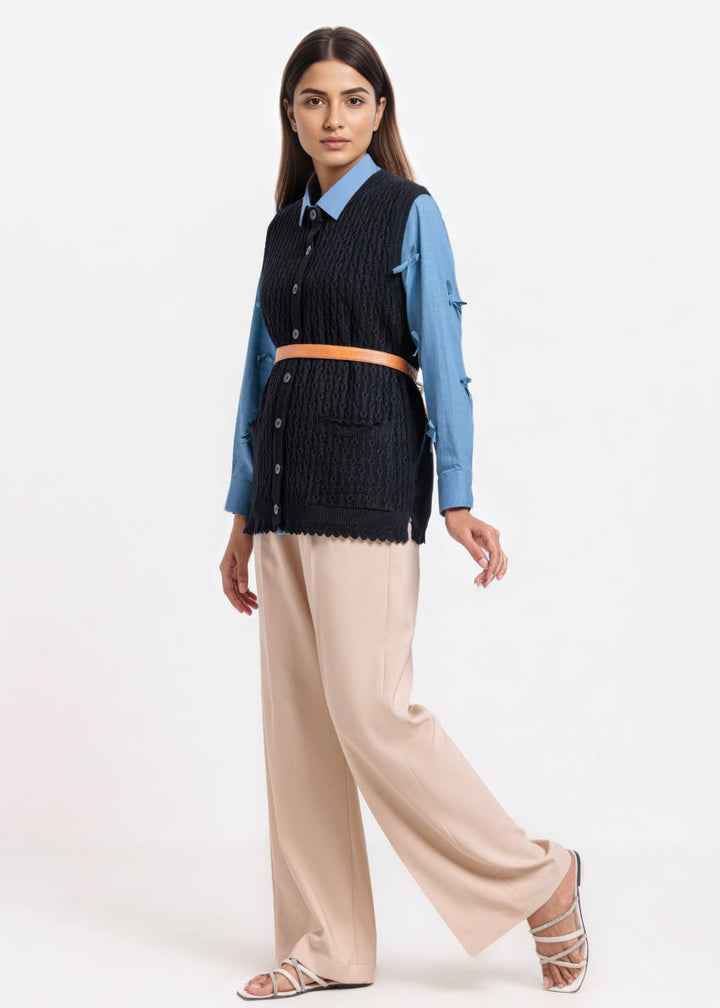 Black-R-Neck Cardigan Sando Sweater (25Y-228-67)