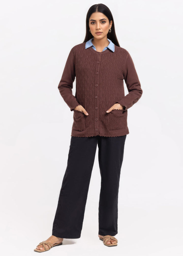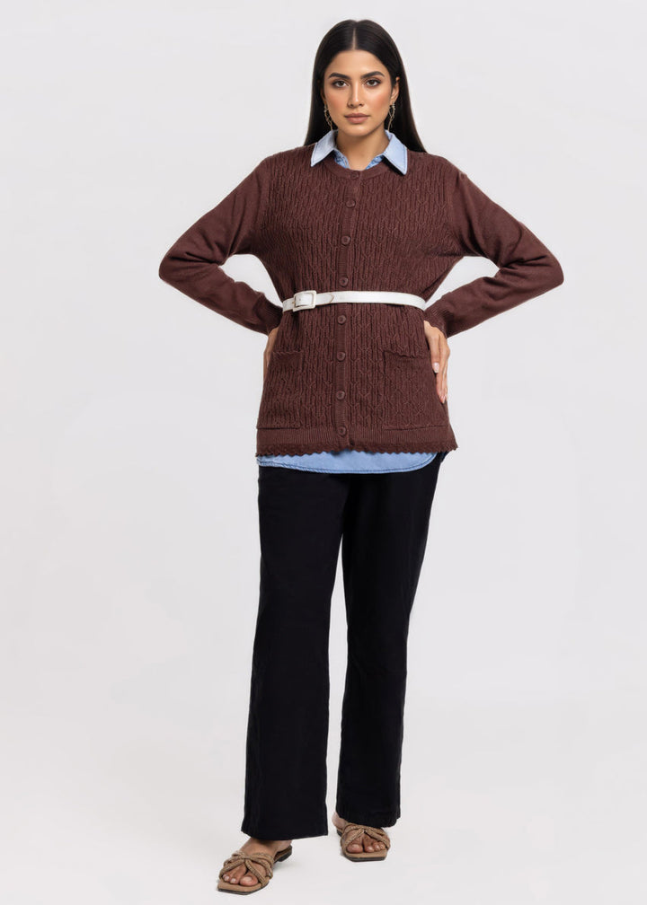 D-Brown-R-Neck Cardigan Full Sleeves Sweater (25Y-229-67)