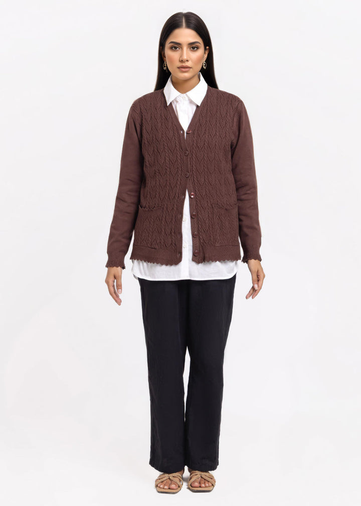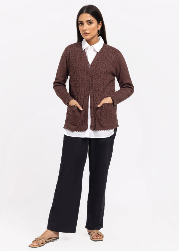 D-Brown-V-Cardigan Full Sleeves Sweater (25Y-233-67)