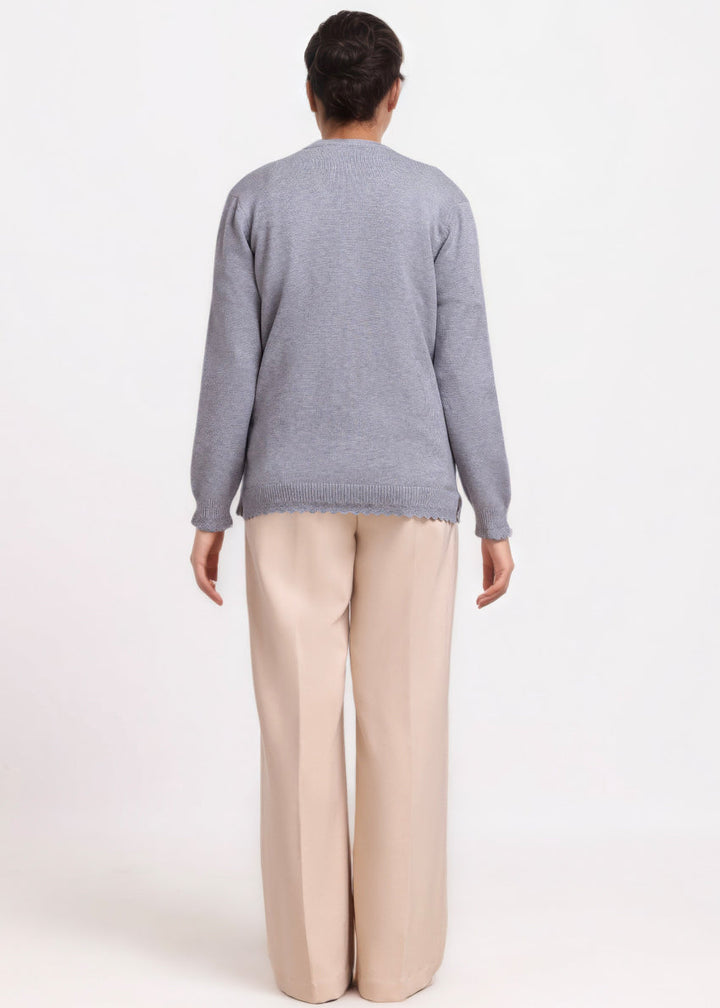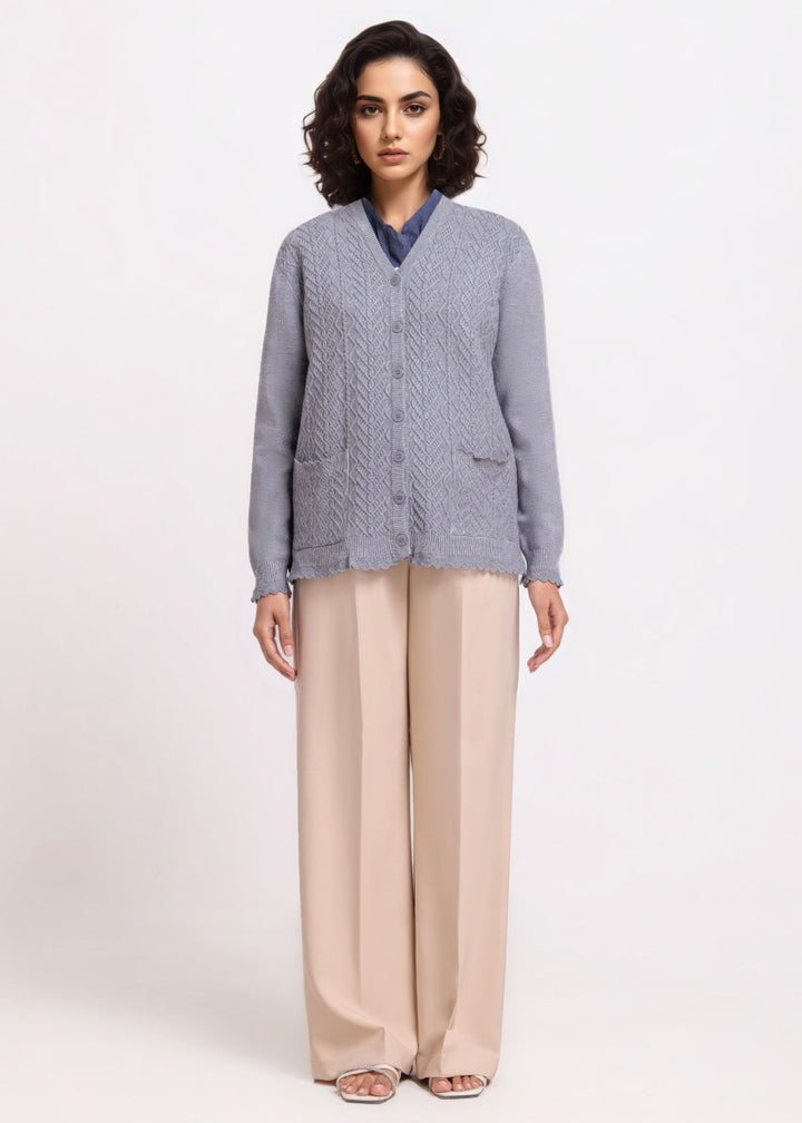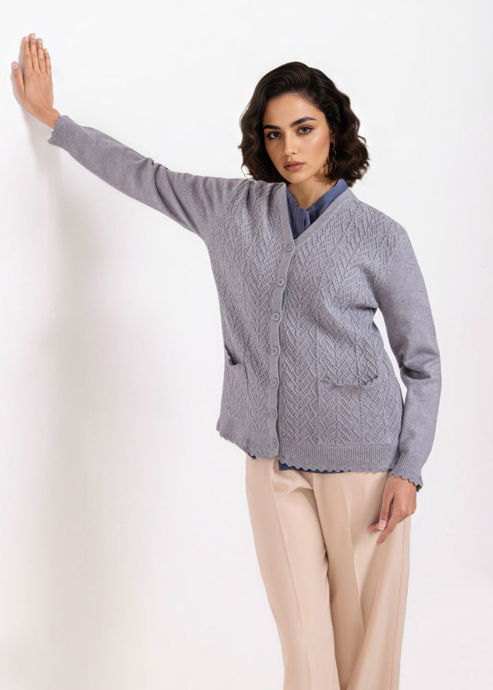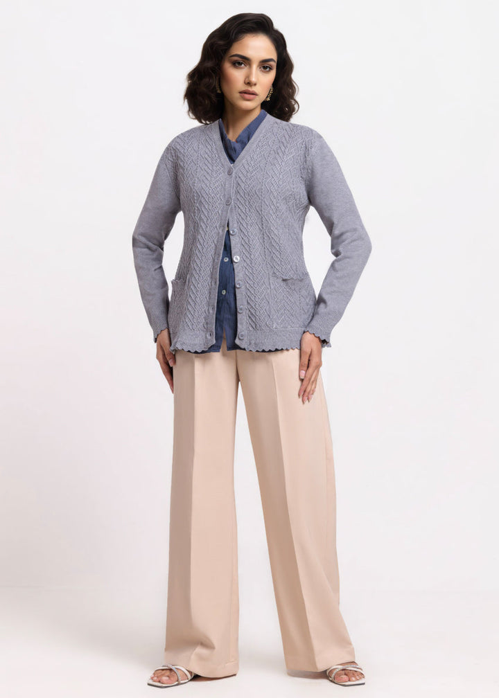 Grey-V-Cardigan Full Sleeves Sweater (25Y-235-67)