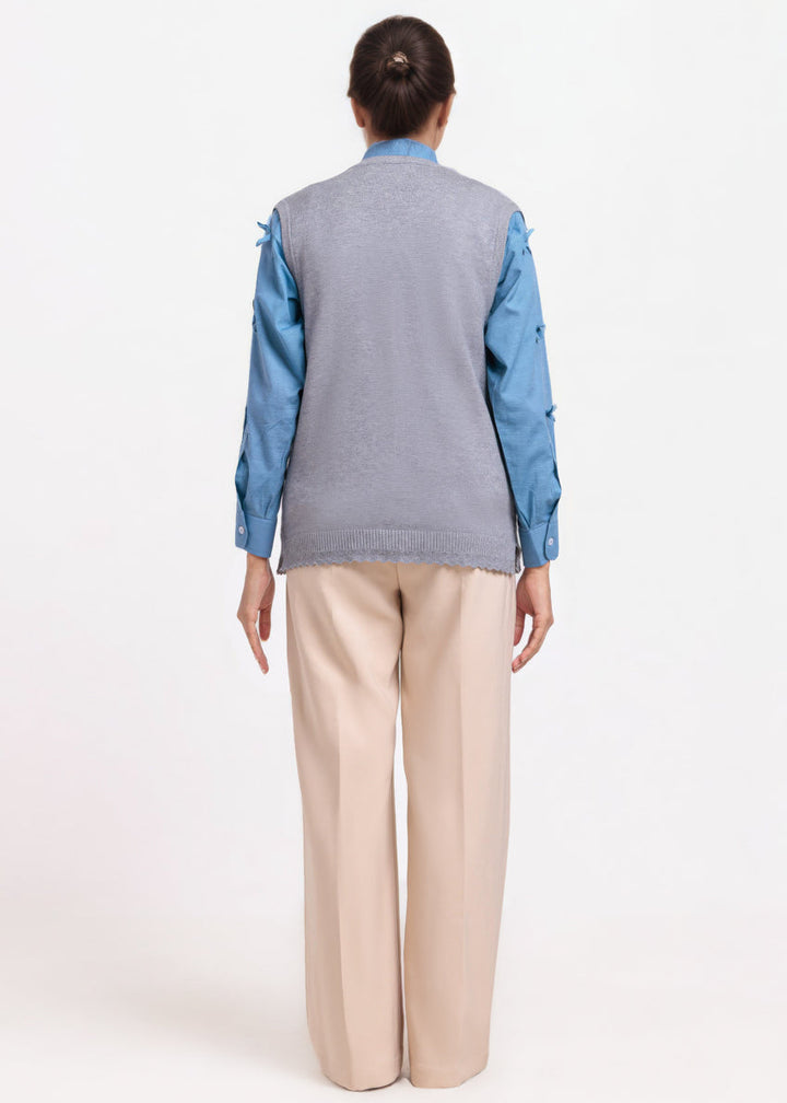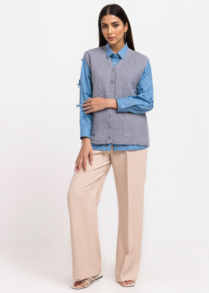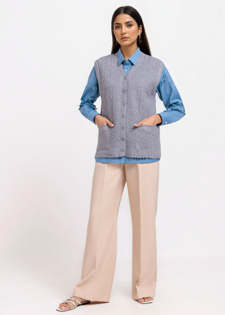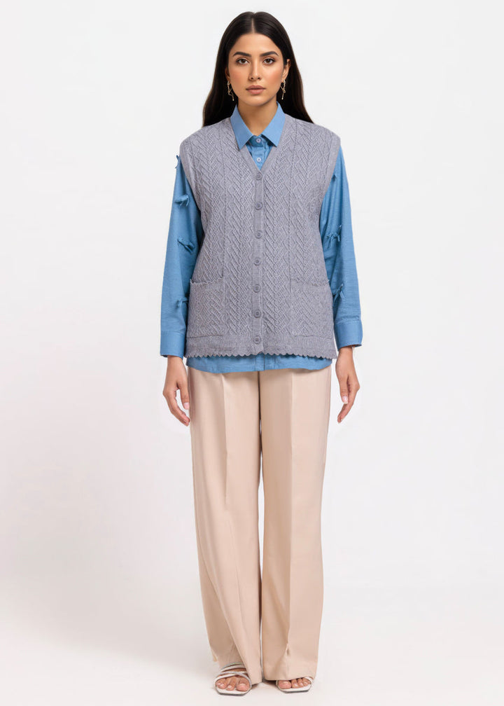 Grey-V-Cardigan Sando Sweater (25Y-236-67)