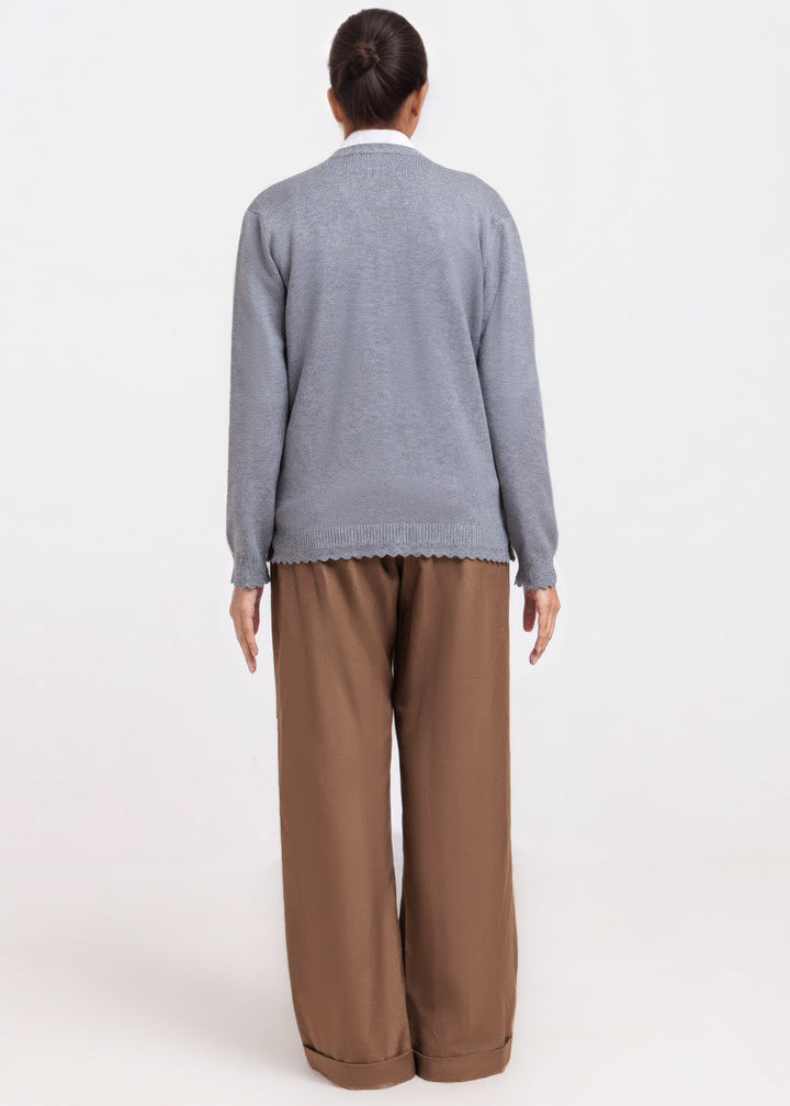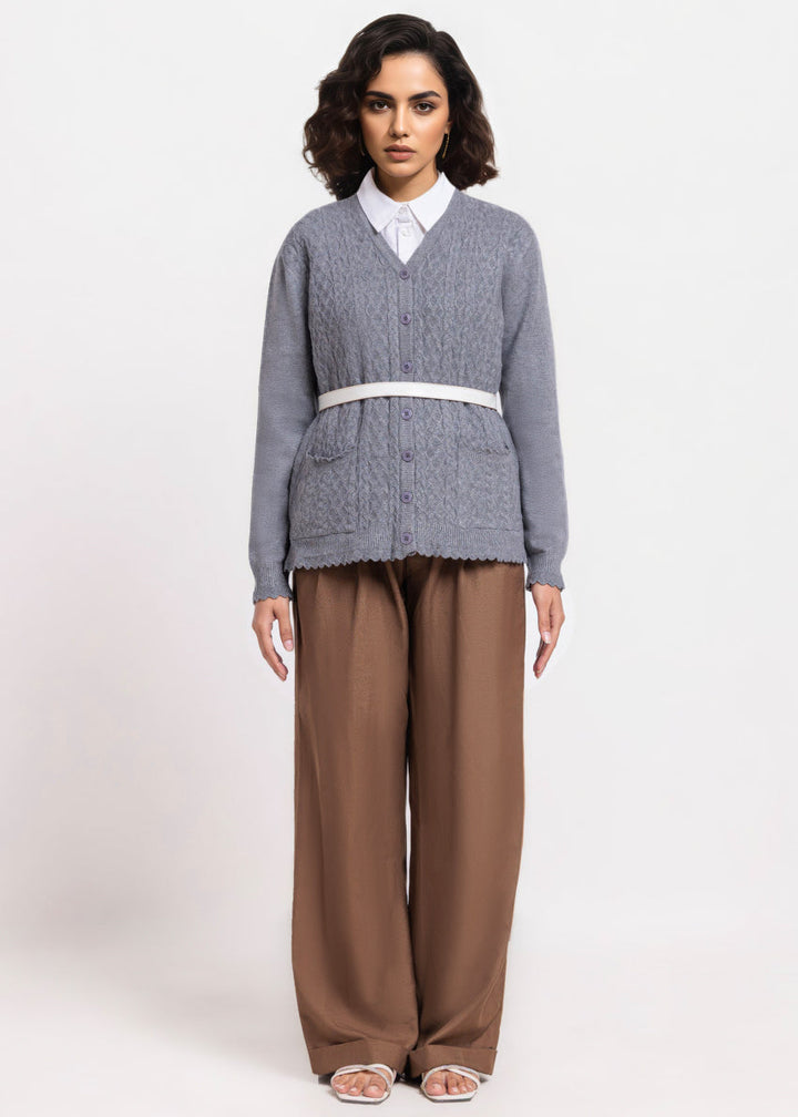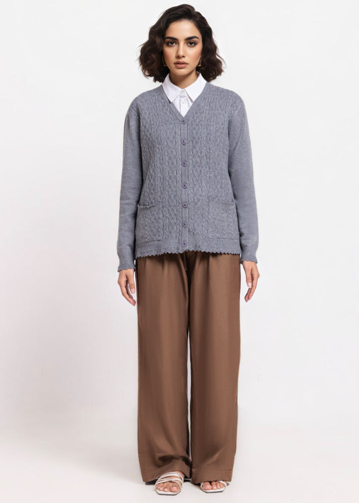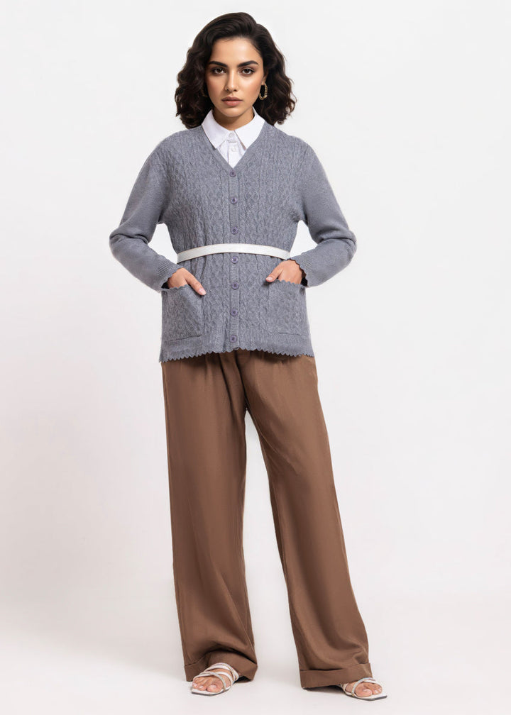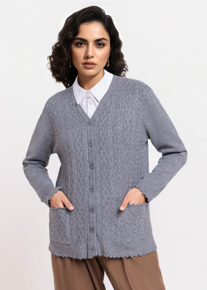 Charcoal-V-Cardigan Full Sleeves Sweater (25Y-237-67)