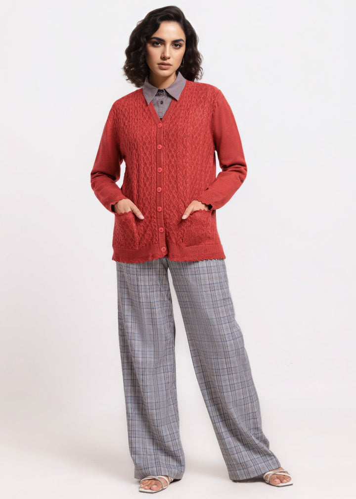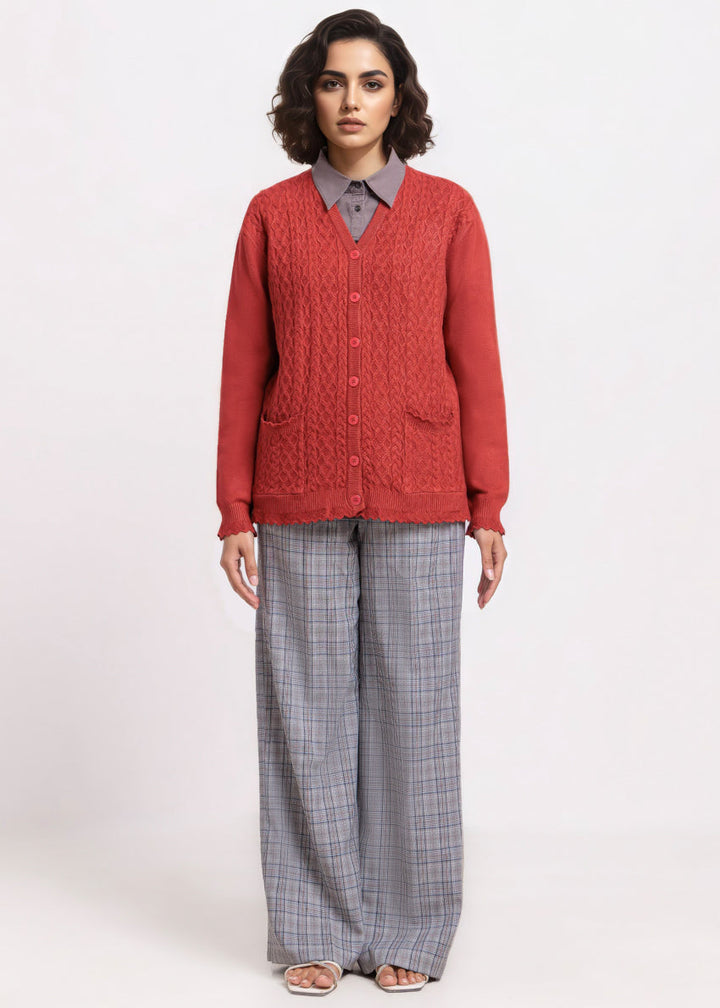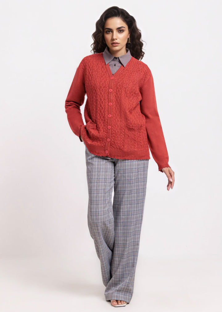 Rust-V-Cardigan Full Sleeves Sweater (25Y-237-67)