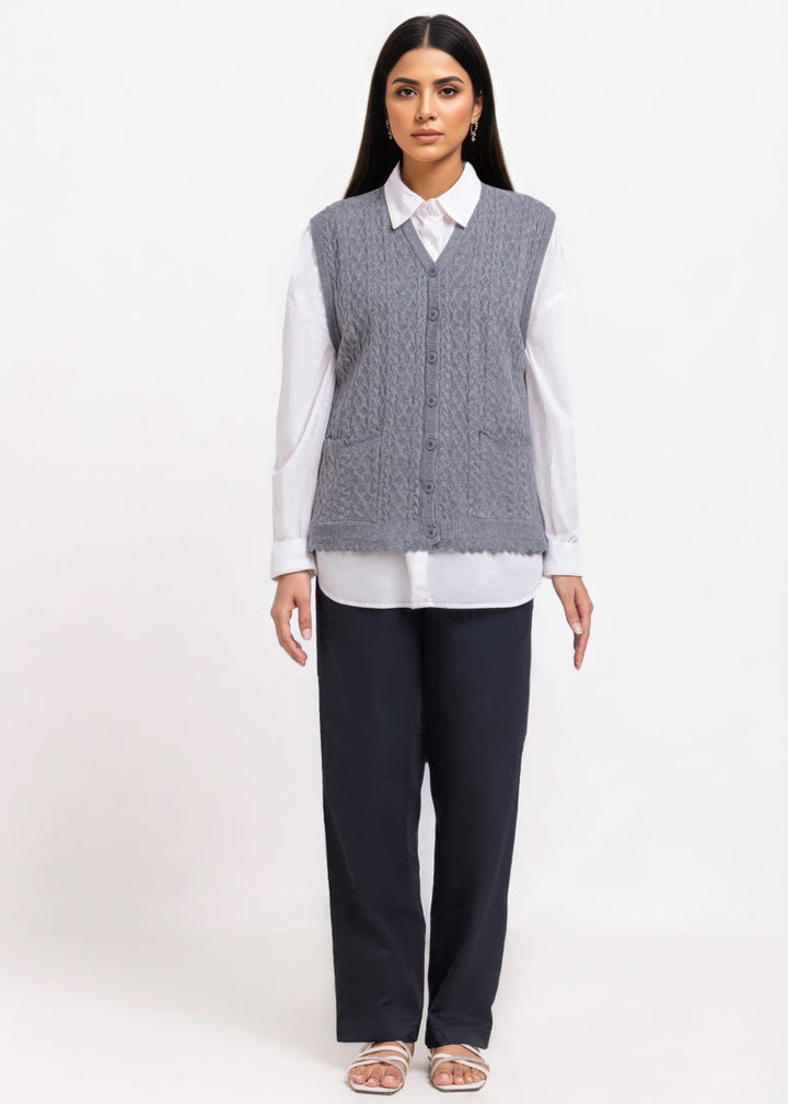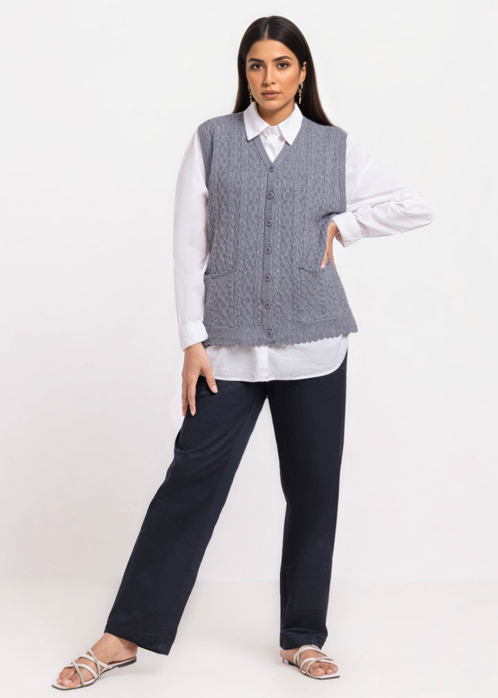 Charcoal-V-Cardigan Sando Sweater (25Y-238-67)