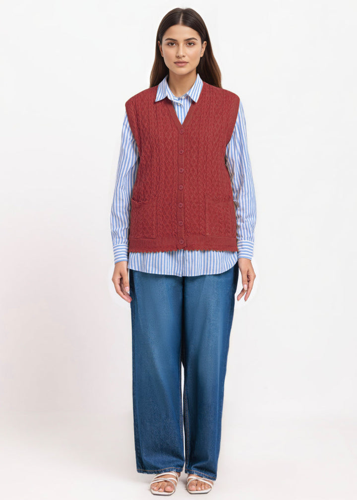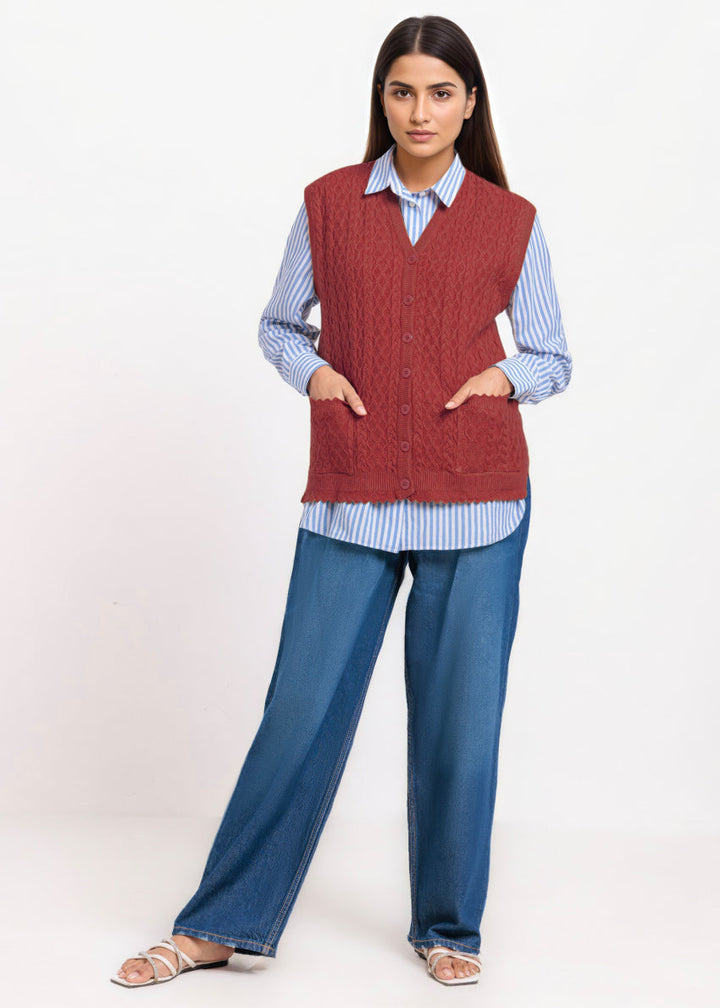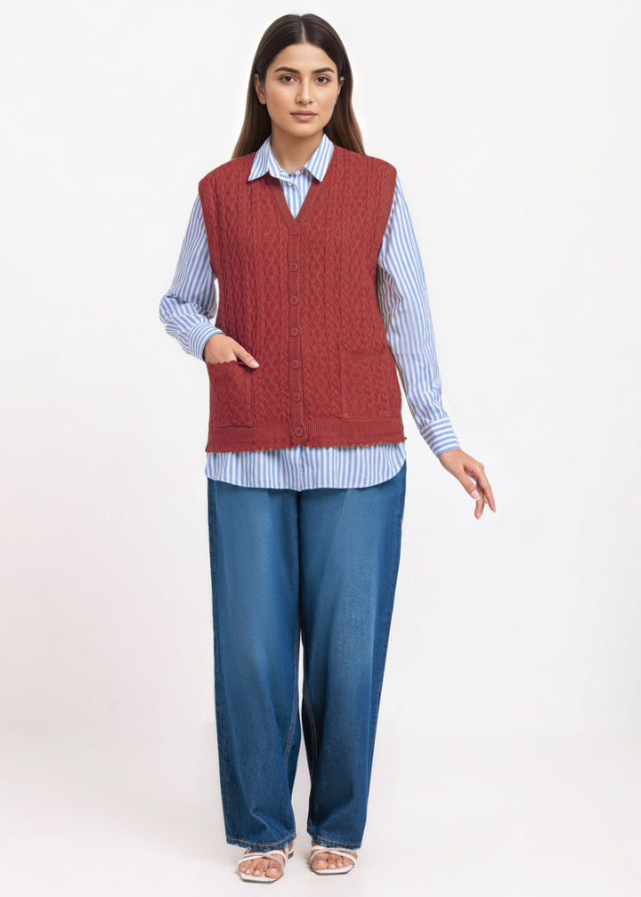 Rust-V-Cardigan Sando Sweater (25Y-238-67)
