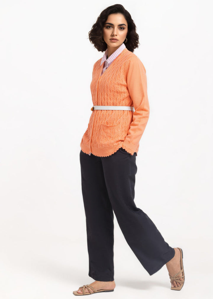 Peach-V-Cardigan Full Sleeves Sweater (25Y-241-67)