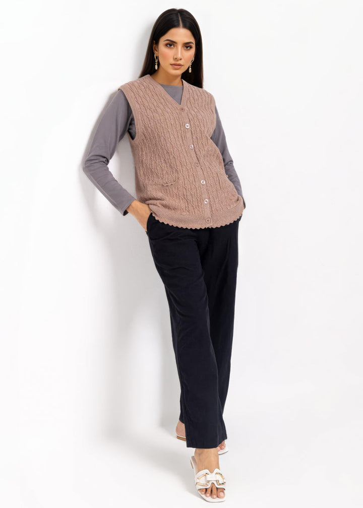 D-Beige-V-Cardigan Sando Sweater (25Y-242-67)