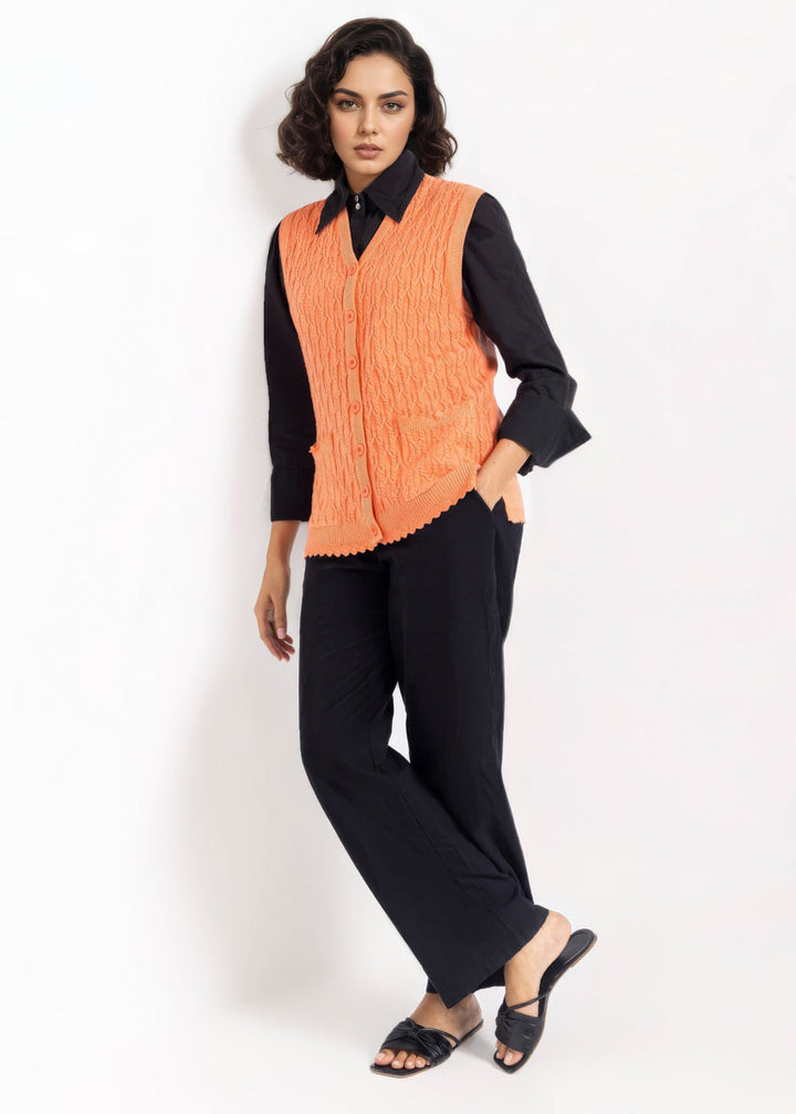 Peach-V-Cardigan Sando Sweater (25Y-242-67)