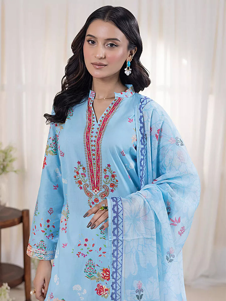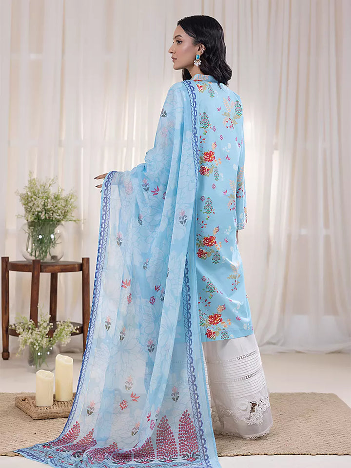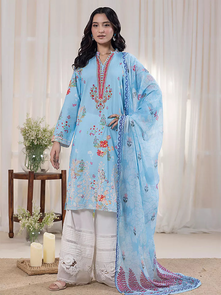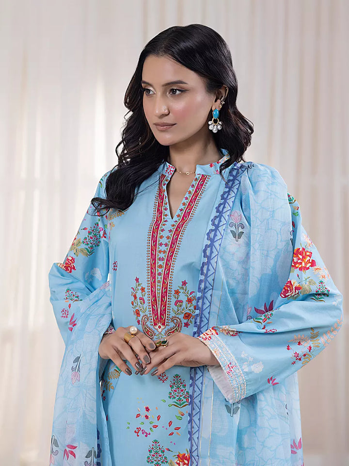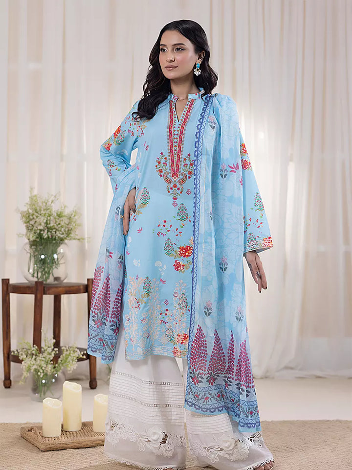 Embroidered printed cambric shirt with printed chiffon dupatta.