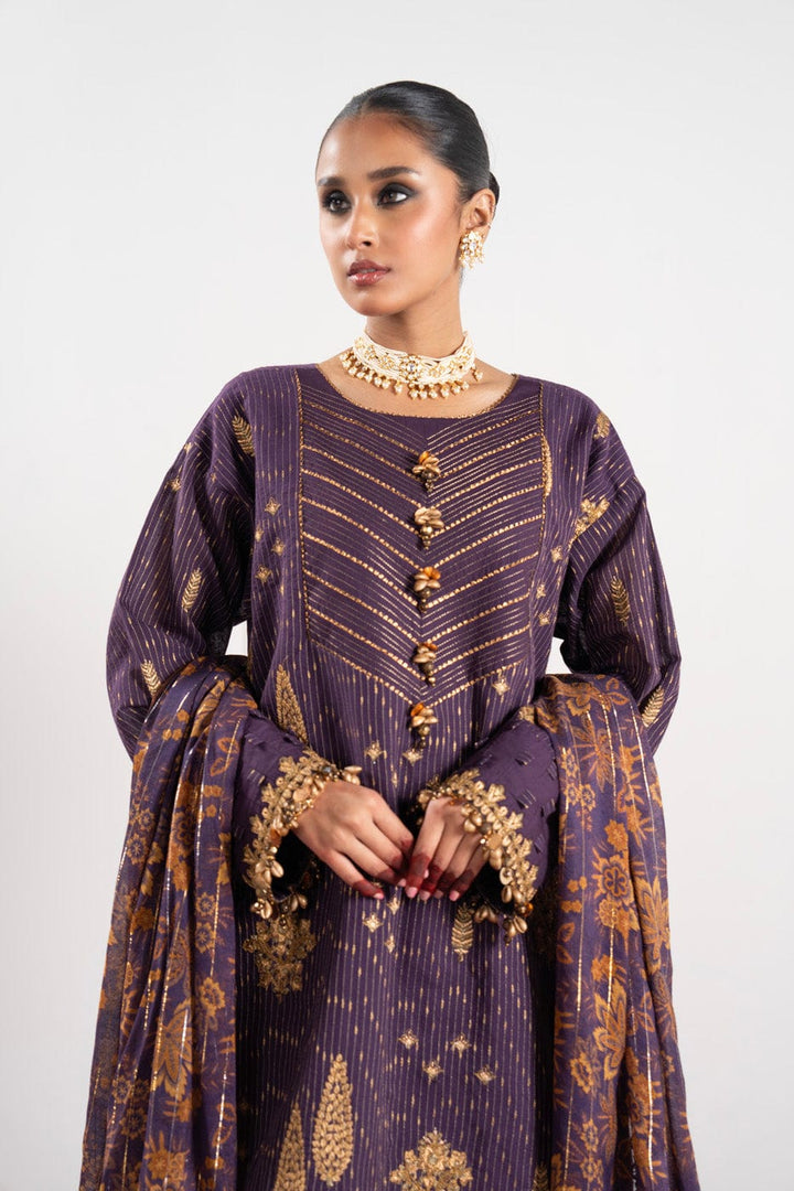 Embroidered Dobby Zari Suit With Zari Lawn Dupatta