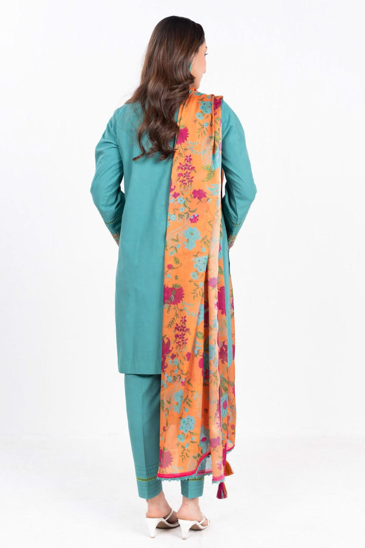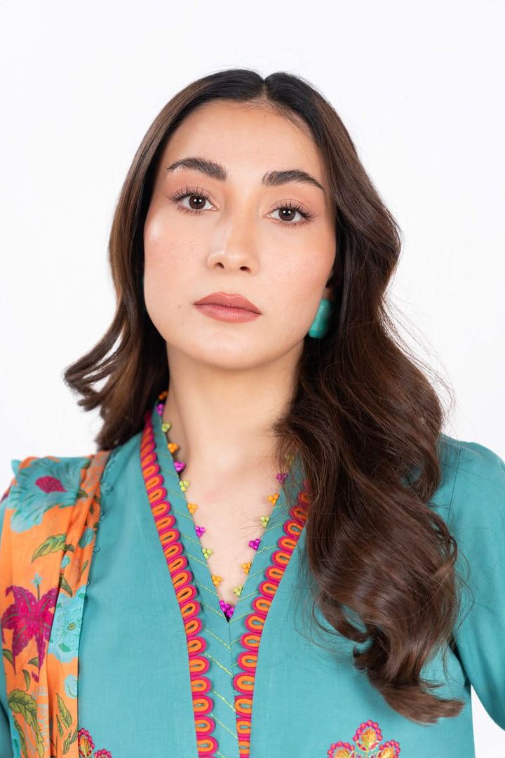 Embroidered Lawn Suit With Printed Silk Dupatta