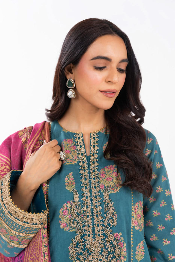 Embroidered Raw Silk Suit With Tissue Silk Dupatta