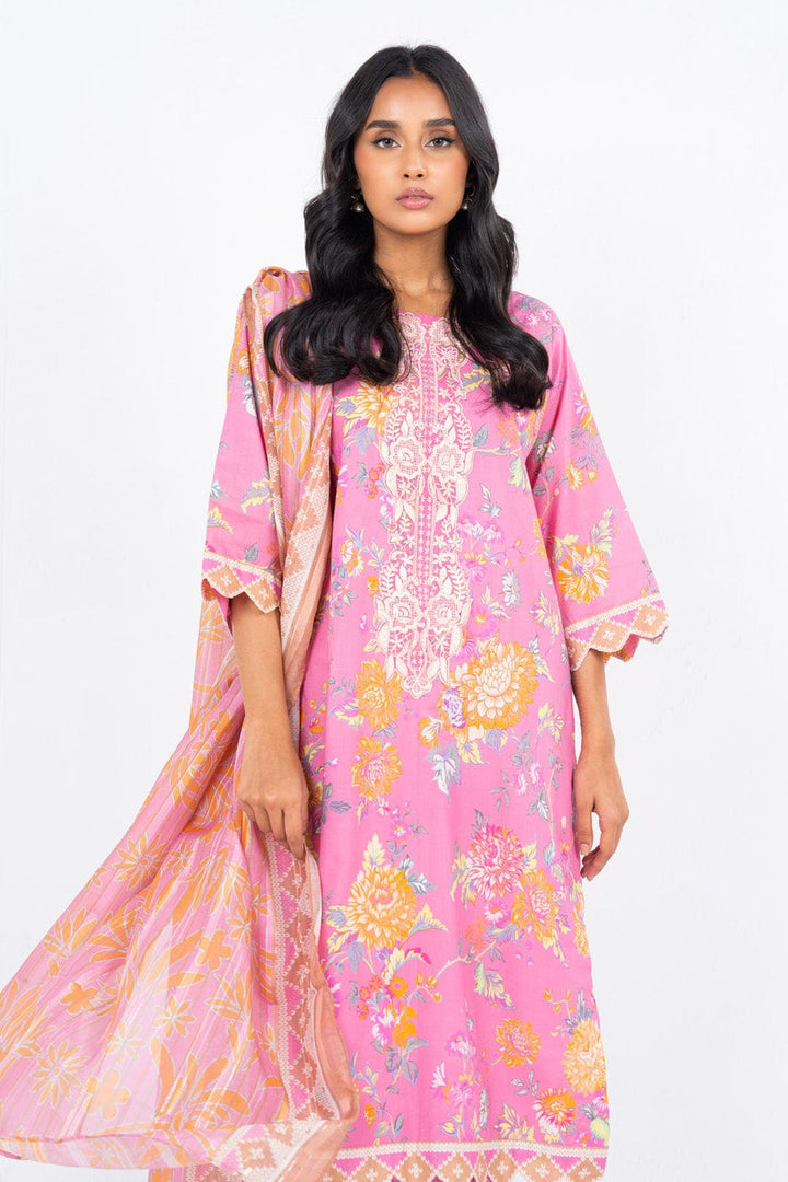 Embroidered Lawn Suit With Zari Stripes Dupatta