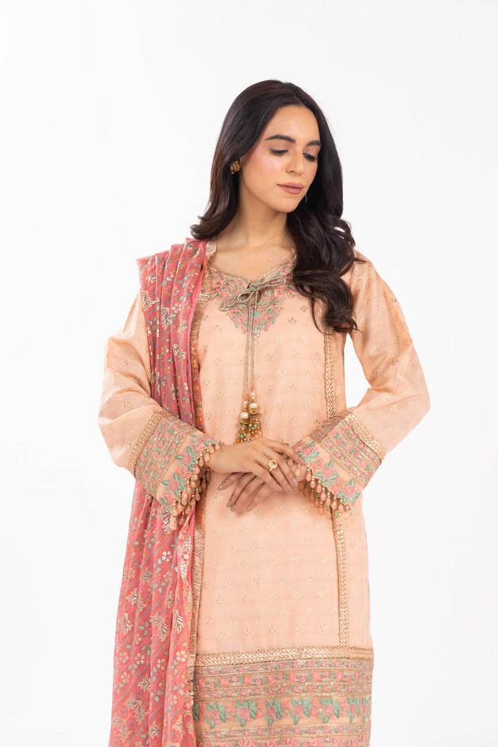 Embroidered Viscose Jacquard Suit With Chiffon Dupatta