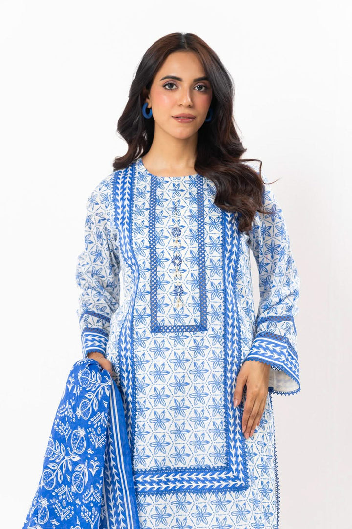 Printed Lawn Suit With Printed Silver Lawn Dupatta