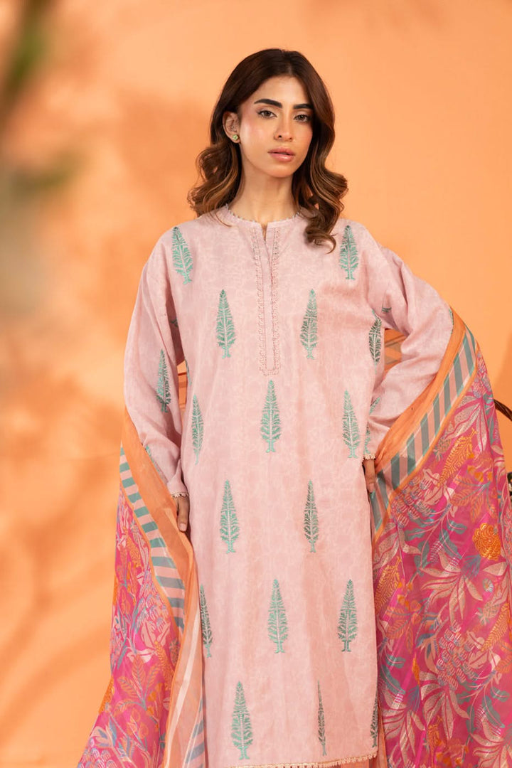 Embroidered Dyed Dobby Suit With Printed Zari Chiffon Dupatta