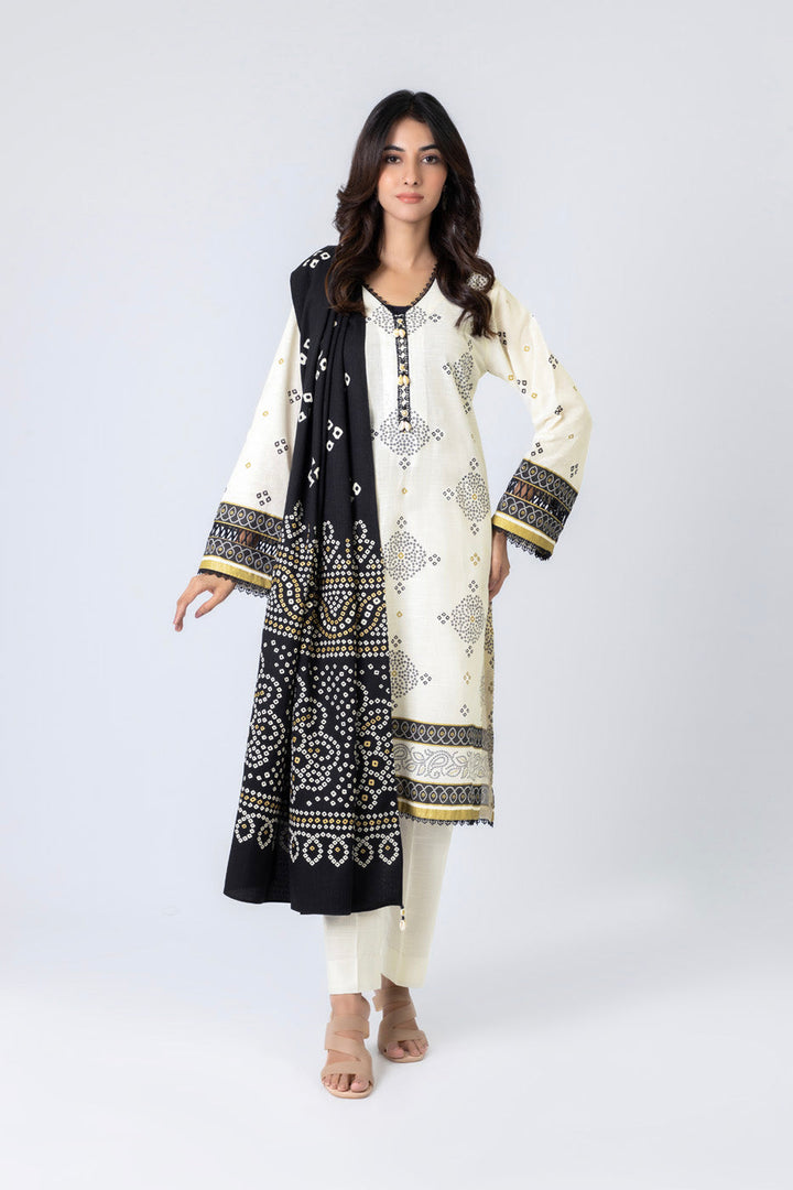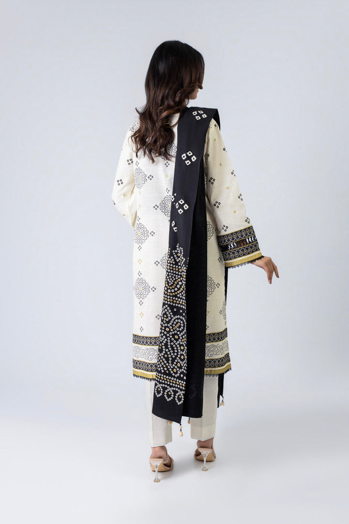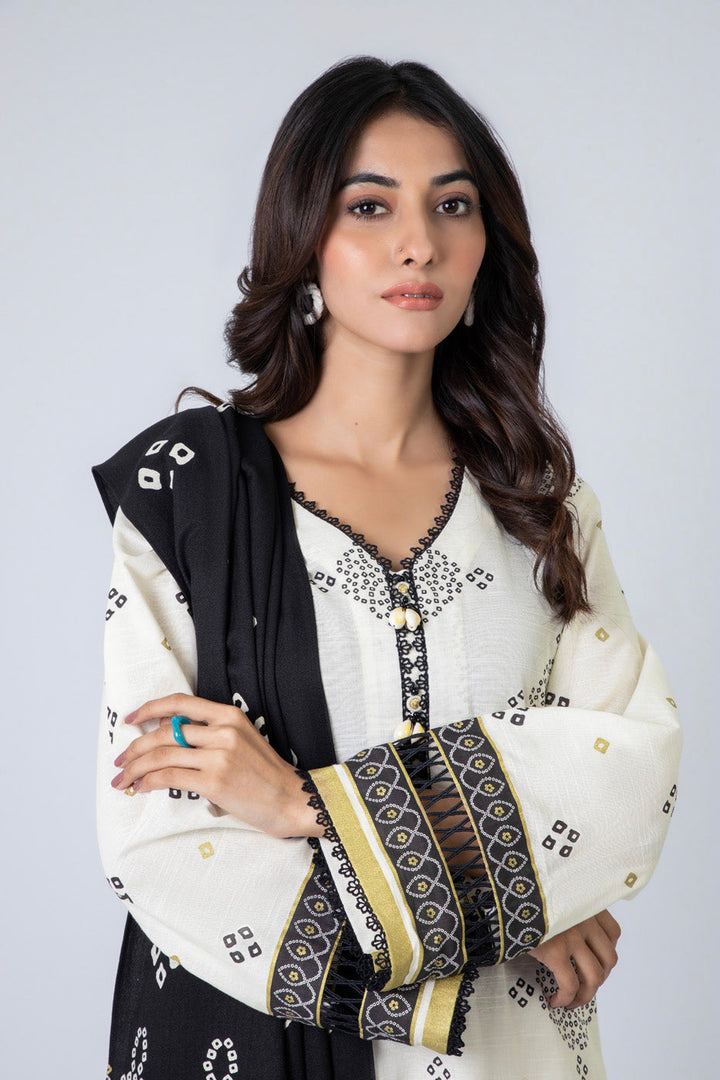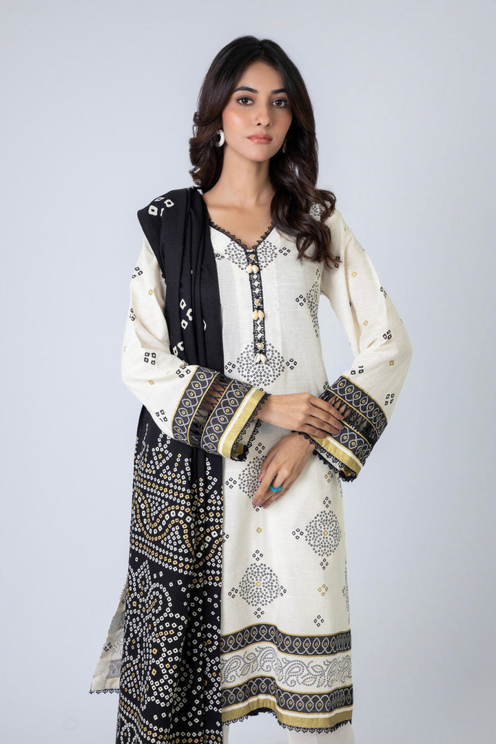 Printed Khaddar Suit With Silky Line Dupatta