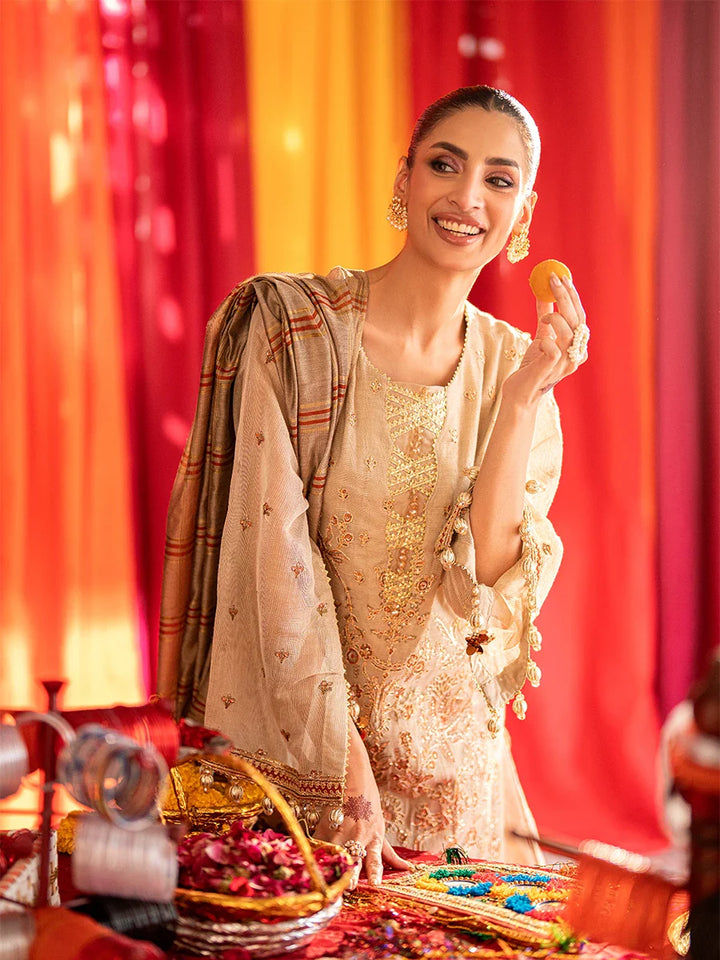 Celebrate tradition with our 3PC Unstitched Festive Embroidered Suit. Designed with meticulous embroidery on premium fabric, this outfit offers versatility and sophistication, making it an ideal choice for any special occasion.