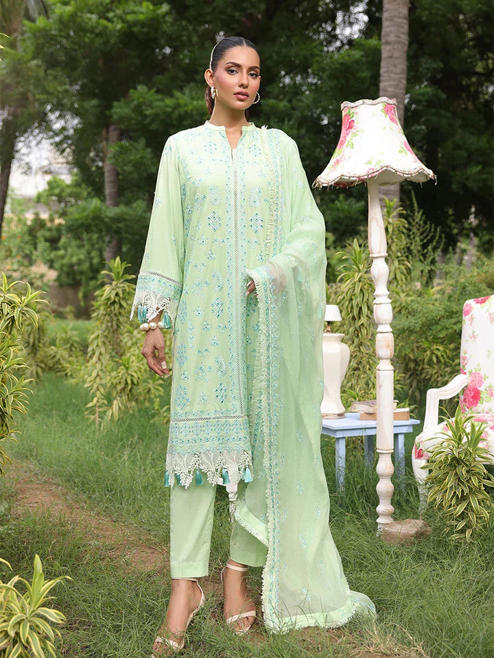 3PC STITCHED CHIKANKARI CAMBRIC EMBROIDERED SUIT (CK001)