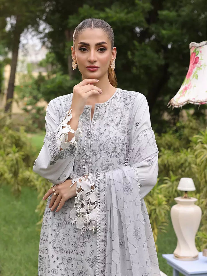 3PC STITCHED CHIKANKARI CAMBRIC EMBROIDERED SUIT